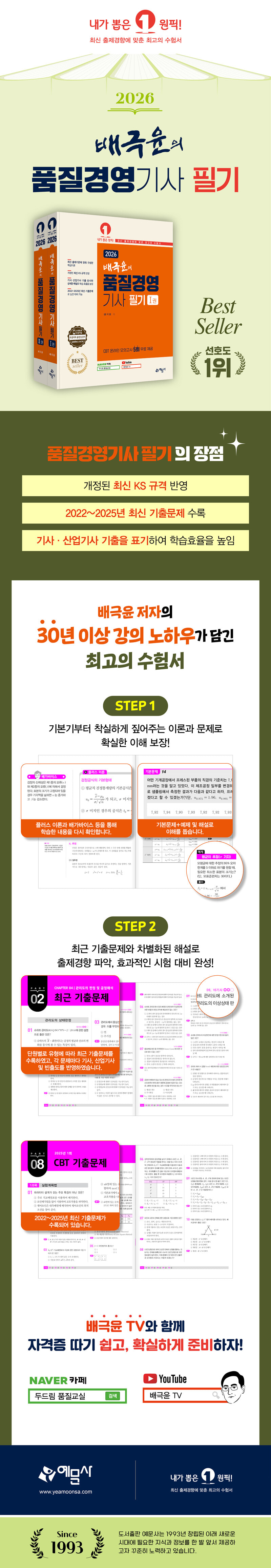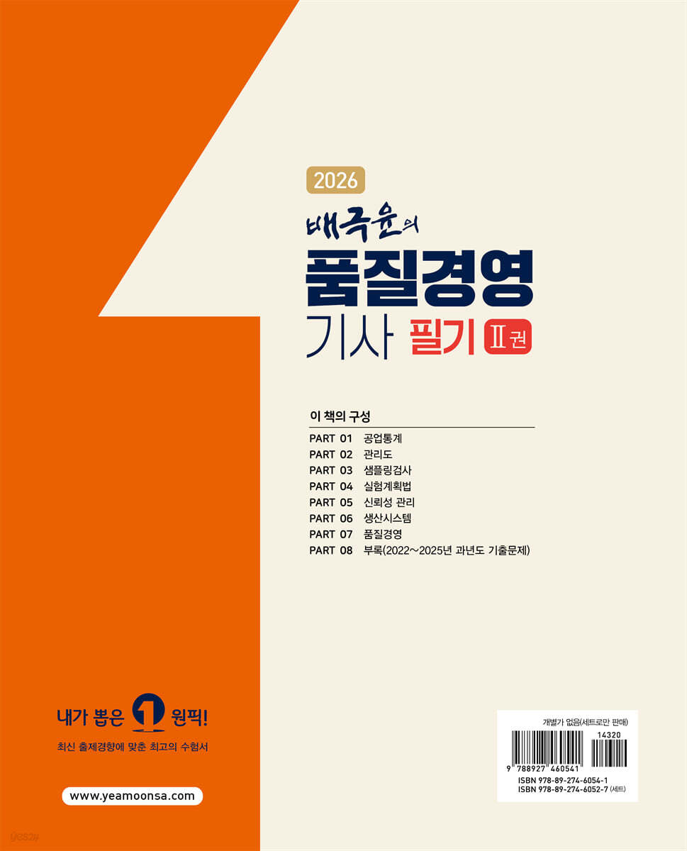 PART 01 공업통계 CHAPTER 1 확률과 확률분포 CHAPTER 2 검정과 추정 CHAPTER 3 상관 및 회귀분석 PART 02 관리도 CHAPTER 1 관리도의 개요 CHAPTER 2 계량값 관리도 CHAPTER 3 계수값 관리도 CHAPTER 4 관리도의 판정 및 공정해석 CHAPTER 5 관리도의 성능 및 수리 PART 03 샘플링검사 CHAPTER 1 검사의 개요 CHAPTER 2 각종 샘플링법과 이론 CHAPTER 3 샘플링검사와 OC곡선 CHAPTER 4 계량값 샘플링검사 CHAPTER 5 계수값 샘플링검사 CHAPTER 6 축차 샘플링검사 PART 04 실험계획법 CHAPTER 1 실험계획의 개념 CHAPTER 2 요인실험 CHAPTER 3 대비와 직교분해 CHAPTER 4 계수치 데이터 분석 CHAPTER 5 분할법 CHAPTER 6 방격법 CHAPTER 7 2n형 요인실험 CHAPTER 8 2n형 교락법 CHAPTER 9 일부실시법 CHAPTER 10 직교배열표 CHAPTER 11 회귀분석 CHAPTER 12 다구찌 실험계획 PART 05 신뢰성 관리 CHAPTER 1 신뢰성의 개념 CHAPTER 2 보전성과 가용성 CHAPTER 3 신뢰성 시험과 추정 CHAPTER 4 시스템의 신뢰도 CHAPTER 5 신뢰성 설계 CHAPTER 6 고장해석 방법 CHAPTER 7 신뢰성 관리 PART 06 생산시스템 CHAPTER 1 생산시스템의 발전 및 유형 CHAPTER 2 수요예측과 제품조합 CHAPTER 3 자재관리 CHAPTER 4 생산계획 및 일정관리 CHAPTER 5 작업관리 CHAPTER 6 설비보전 PART 07 품질경영 CHAPTER 1 품질경영 CHAPTER 2 품질코스트 CHAPTER 3 표준화 CHAPTER 4 규격과 공정능력 CHAPTER 5 측정시스템 CHAPTER 6 품질혁신 활동 PART 08 부록 수험용 수치표 [2권] PART 01 공업통계 CHAPTER 1 확률과 확률분포 CHAPTER 2 검정과 추정 CHAPTER 3 상관 및 회귀분석 PART 02 관리도 CHAPTER 1 관리도의 개요 CHAPTER 2 계량값 관리도 CHAPTER 3 계수값 관리도 CHAPTER 4 관리도의 판정 및 공정해석 CHAPTER 5 관리도의 성능 및 수리 PART 03 샘플링검사 CHAPTER 1 검사의 개요 CHAPTER 2 각종 샘플링법과 이론 CHAPTER 3 샘플링검사와 OC곡선 CHAPTER 4 계량값 샘플링검사 CHAPTER 5 계수값 샘플링검사 CHAPTER 6 축차 샘플링검사 PART 04 실험계획법 CHAPTER 1 실험계획의 개념 CHAPTER 2-1 요인실험(1요인실험) 2-2 요인실험(반복 없는 2요인실험) 2-3 요인실험(난괴법) 2-4 요인실험(반복 있는 2요인실험) 2-5 요인실험(다요인실험) CHAPTER 3 대비와 직교분해 CHAPTER 4 계수치 데이터 분석 CHAPTER 5 분할법 CHAPTER 6 방격법 CHAPTER 7 2n형 요인실험 CHAPTER 8,9 교락법 및 일부실시법 CHAPTER 10 직교배열표 CHAPTER 11 회귀분석 CHAPTER 12 다구찌 실험계획 PART 05 신뢰성 관리 CHAPTER 1 신뢰성의 개념 CHAPTER 2 보전성과 가용성 CHAPTER 3 신뢰성 시험과 추정 CHAPTER 4 시스템의 신뢰도 CHAPTER 5 신뢰성 설계 CHAPTER 6 고장해석 방법 CHAPTER 7 신뢰성 관리 PART 06 생산시스템 CHAPTER 1 생산시스템의 발전 및 유형 CHAPTER 2 수요예측과 제품조합 CHAPTER 3 자재관리 CHAPTER 4 생산계획 및 일정관리 CHAPTER 5 작업관리 CHAPTER 6 설비보전 PART 07 품질경영 CHAPTER 1 품질경영 CHAPTER 2 품질코스트 CHAPTER 3 표준화 CHAPTER 4 규격과 공정능력 CHAPTER 5 측정시스템 CHAPTER 6 품질혁신 활동 PART 08 부록 2022년 기출문제 1회 2022년 기출문제 2회 2022년 CBT 기출문제 4회 2023년 CBT 기출문제 1회 2023년 CBT 기출문제 2회 2023년 CBT 기출문제 4회 2024년 CBT 기출문제 1회 2024년 CBT 기출문제 2회 2024년 CBT 기출문제 3회 2025년 CBT 기출문제 1회 2025년 CBT 기출문제 2회 2025년 CBT 기출문제 3회 |