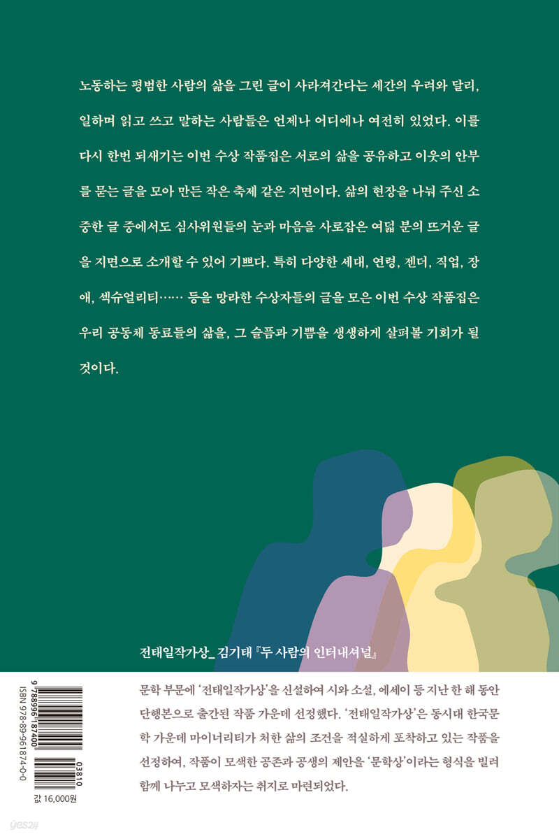 전태일문학상 수상작품집은 해마다 우리 사회의 가장 일상적인 자리에서 건져 올린 이야기들을 문학이라는 이름으로 묶어왔다. 그러나 올해 작품집은 그중에서도 유난히 생생하고, 다층적이며, 절실하다. 2025년, 전태일문학상은 공모 부문을 에세이 단일 부문으로 과감히 전환했다. 이는 노동하는 사람들의 현실을 가장 직접적이고 진솔한 문장으로 담아내기 위해 선택한 변화였고, 그 결과 평범한 시민들이 써 내려간 300편의 기록이 도착했다. 이는 노동을 둘러싼 담론과 데이터, 분석 너머에 있는 ‘살아 있는 목소리’가 여전히 존재한다는 증거이기도 하다. 운전석의 새벽 공기, 특수교사의 고단한 하루, 돌봄과 배제, 장애와 편견, 일의 보람과 희망, 부당함과 눈치…. 각자의 자리에서 살아낸 이 경험들은 서로 다른 듯 보이지만, 읽다 보면 결국 하나의 큰 흐름으로 만나 동료 시민의 삶을 이해하는 감각으로 귀결된다. 각자의 삶이 서로에게 건네는 작은 연대의 풍경이다. 올해 처음 신설된 ‘전태일작가상’은 전태일문학상의 지평을 한층 넓히는 시도이자, 전태일의 이름을 품고 꾸준히 쓰고 질문해온 작가에게 보내는 응원의 손길이다. 연대의 감각을 잃지 않는 문장, 냉혹한 현실에도 기울지 않는 시선- 이 상은 전태일문학상이 단순히 공모전의 차원을 넘어 ‘문학적 실천’을 지지하는 제도적 축으로 자리 잡고 있음을 보여준다. 전태일문학상 수상작품집은 우리 사회의 가장 낮은 자리에서 쓰인 문장들이 어떻게 공동체를 다시 이어붙이고, 서로 다른 삶들이 어떻게 하나의 감각으로 연결되는지를 보여준다. 이 책은 노동을 다루지만, 결국 인간을 말한다. 이것이 바로 문학이 할 수 있는 일이며, 전태일문학상이 여전히 존재해야 하는 이유다. |