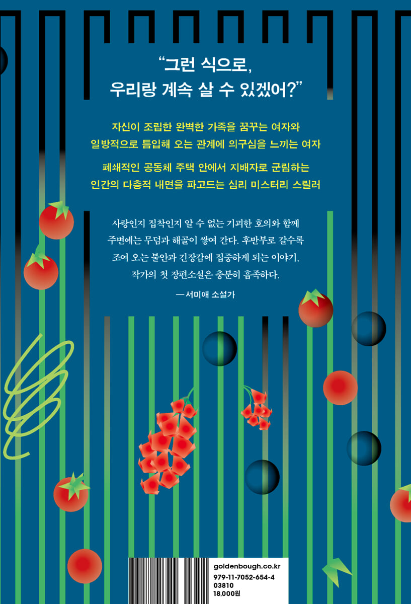 공동체 주택이라는 생활상 속에서 피어나는 위계와 불균형 『토마토 정원』은 인구 지형이 재편된 2032년의 근미래를 배경으로 한다. 고령의 집주인들이 살다 떠난 빌라와 단독주택들이 인구 감소 추세와 맞물려 흉물스럽게 방치되자, 도심 슬럼화를 막기 위해 정부가 빈집을 매입해 공동체 주택으로 고쳐 임대하거나 임종을 앞둔 노인들을 돌보는 가정식 요양 주택으로 전환하는 주거 정책은 머지않은 미래로 느껴질 정도로 현실적이다. 서울 최북단의 수용구 도래동에 위치한 ‘안음주택’ 역시 이러한 빈집 리모델링 사업의 일환으로 개발된 공동체 주택으로, 독거노인부터 자립준비청년, 비혼 남매, 한 부모 가정까지 다양한 구성원이 한데 모여 살고 있는 곳이다. 각 세대를 분리하면서도 공용 거실과 주방을 두고 다양한 세대가 따로 또 같이 지낼 수 있도록 설계된 구조이기에, 입주민들이 돌아가며 장을 보거나 당번을 정해 저녁 식사를 준비하는 등 나름의 생활 규칙도 정해져 있다. 식사나 돌봄 등 일상생활에 수반되는 노동을 분담할 수 있다는 장점도 있지만, 한편으로는 공동생활이라는 명분 아래 일방적으로 강요되는 규칙에 따라야 하는 통제적이고 폐쇄적인 속성 또한 지니고 있다. 안음주택의 입주민이자 관리소장 은수는 입주민들 사이에서 누님, 엄마, 딸이라는 호칭으로 불리며 이들이 이룩한 유사 가족의 정점에 있는 인물로, 타인에게 선뜻 도움을 주는 한편 개인적인 친밀감을 은근히 종용하며 조건부 수용 심리의 전형적인 양상을 띤다. 이혼하고 딸아이와 함께 입주한 싱글 맘 지수는 자신의 아이를 조건 없이 돌봐 주겠다는 은수에게 감사를 느끼면서도, 대가 없이 주어진 이 호의가 낯설고 어색하기만 하다. 한소은 작가는 이처럼 절박한 사람들이 의존적인 환경에서 어떻게 점차 약자로 변모해 가는지 그 처지와 심리를 섬세하게 묘사한다. 위험하면서도 따스하고 파멸적이면서도 포근한 관계와 장소를 그려 보고 싶었다는 작가의 말처럼, 공동체 주택이라는 독특한 주거 환경은 관계의 위계와 이중성이 두드러지는 완벽한 무대가 된다. 입주민 모두가 은수라는 하나의 뿌리에 의지해 가지를 뻗고 살아가는 곳. 이 집에서 여느 가정집과 흡사한 안정감이 느껴지는 것도 모두 저 은수라는 여자가 중심에 있기 때문일 것이다. - 본문 중에서 저마다의 뒤틀린 욕망과 이전투구가 뒤얽히는 군상극 이분법으로 규정할 수 없는 인간의 다층적 내면을 고찰하다 근미래 배경의 공동체 주택을 무대로 한다는 점에서 구병모 작가의 『네 이웃의 식탁』이 연상되기도 하지만, 보다 더 장르적인 층위가 맞물린 이야기는 각종 미스터리와 범죄로 확장되며 인물들의 어두운 이면을 비춘다. 입주민들을 살뜰히 챙기는 다정한 은수, 유기묘를 구조하고 식물을 기르며 생의 활력을 불어넣는 은찬은 한편으론 자신이 우선하는 가치를 추종하는 그릇된 욕망의 공모자들이다. 또 돈과 신분 상승 욕구를 좇는 인물들이 저마다 얽히고설키며 범죄 미스터리 군상극의 면모를 띠는 『토마토 정원』은 그 중심에 있는 은수를 절대 선에 대적하는 반동 인물이나 결핍이 있는 인물로만 그리지는 않는다. ‘때로는 살인자들도 할머니가 길을 건너도록 도와준다는 사실을 외면해서는 안 된다’고 지적했던 스티븐 킹의 말처럼 선악의 이분법으로 가를 수 없는 인간의 복잡다단한 내면을 고찰하면서도, 끝내 이해와 포용을 통해 회복에 다가서는 발전적 가능성을 응시한다. 사람 사이의 농도가 진하다 못해 찐득해지는 어떤 순간부터 관계는 언뜻 공포의 색채를 띠게 되는 것 같다. 칡넝쿨이 나무를 휘감듯 질기게 얽혀 쉽게 끊어 낼 수도, 도망칠 수도 없는 관계를 그려 보고 싶었다. 그럼에도 어쩔 수 없이 사랑은 칡넝쿨을 닮았다는 생각을 하면서. - 작가의 말 중에서 브릿G ‘단편에서 장편으로’ 프로젝트 작가와 편집자가 1:1로 매칭되어 확장 가능성이 돋보이는 단편을 장편으로 개작하는 과정을 약 1년여간 함께 진행하는 온라인 소설 플랫폼 브릿G의 창작 지원 프로젝트. 제1회 최종 출판작으로 『토마토 정원』과 『아무도 읽지 않습니다』가 선정되었으며, 현재 제2회 프로젝트가 진행 중이다. |