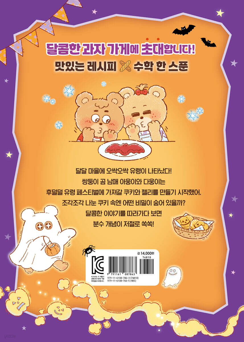 달달곰 과자 가게에 들러 보세요! 이 이야기의 배경인 달콤 마을에는 맛있기로 소문난 ‘달달곰 과자 가게’가 있어요. 마을 어귀부터 달콤하고 고소한 냄새가 퍼지면 ‘아, 달달곰이 문을 열었구나’ 하고 아침부터 손님들이 우르르 모여들어요. 예쁘고 맛있는 과자로 가득한 이 가게의 주인은 사랑스러운 곰 가족이에요. 한편 쌍둥이 곰 남매 아웅이와 다웅이는 엄마 아빠를 도와 오늘도 열심히 과자와 빵을 만드는데, 수학 개념을 녹인 다양한 레시피를 소개함으로써 독자들이 자연스럽게 수학 개념을 배울 수 있어요. 《달달곰 과자 가게 4》에는 겁 많고 외로운 꼬마 유령이 등장해요. 아웅이와 다웅이는 달달 마을에서 열리는 ‘후덜덜 유령 페스티벌’을 준비하며 꼬마 유령을 만나요! 처음에는 무섭기만 했던 유령 친구와 조금씩 가까워지며 특별한 ‘분수 과자’를 함께 나눠 먹게 되죠. 하지만 꼬마 유령은 아웅이 다웅이와 페스티벌에 가는 일이 망설여져요. 과연 아웅이와 다웅이는 꼬마 유령에게 진짜 마음을 전할 수 있을까요? 그리고 결정적인 순간마다 등장해 곰 남매를 돕는 스푼 군, 포크 양, 뒤집개 할매, 휘리릭, 계량컵 박사까지! 조리 도구 오총사는 또 어떤 시간의 마법을 펼치게 될까요? 이야기 곳곳에는 수학을 발견하는 재미가 숨어 있어요. 과자를 나누는 과정에서 분수를 이해하고, 양을 재고 순서를 정하며 자연스럽게 수의 의미를 익힐 수 있죠. 달콤한 이야기 속에서 수학을 경험하다 보면, 수학이 더 친근해지고 스스로 문제를 해결하는 힘도 쑥쑥 자라날 거예요. 이 책을 쓴 서지원 작가는 친근하게 접할 수 있는 동화를 통해 학생들이 자신도 모르는 사이에 수학 내용을 쉽게 이해할 수 있도록 도울 예정이며 특별한 레시피를 계속해서 만들어낼 계획이라고 합니다. 누구든지 부담 없이 읽을 수 있으며, 자연스럽게 여러 수학 개념과 성질을 이해할 수 있는 ‘달달곰 과자 가게’가 문을 열었으니, 달콤한 수학 동화를 맛보러 함께 가 볼까요? |