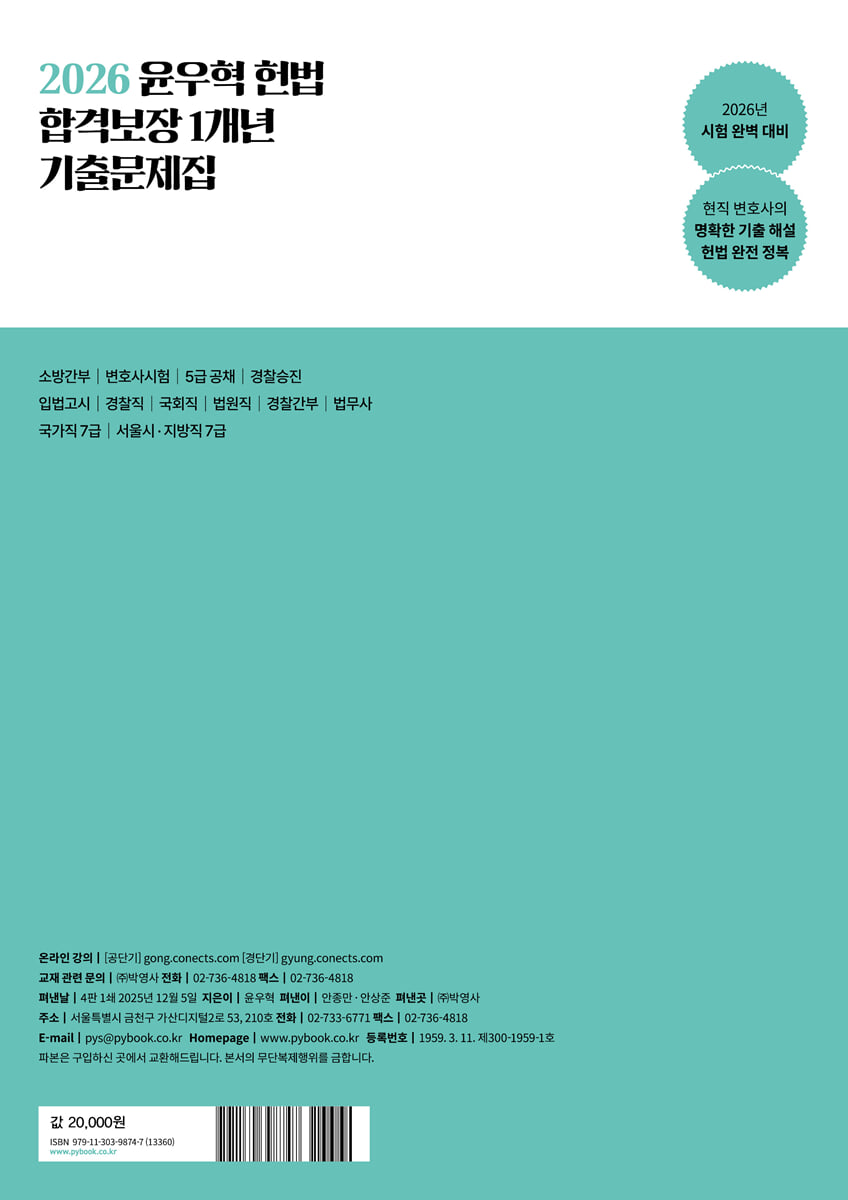 제01회 | 2025 변호사 시험 제02회 | 2025 소방간부 제03회 | 2025 경찰승진 제04회 | 2025 입법고시 제05회 | 2025 5급 공채 제06회 | 2025 경찰 1차 제07회 | 2025 국회직 8급 제08회 | 2025 법원직 9급 제09회 | 2025 경찰간부 제10회 | 2025 경찰 2차 제11회 | 2025 법무사 제12회 | 2025 국가직 7급 제13회 | 2025 서울시 · 지방직 7급 PART 02 해설편 제01회 | 2025 변호사 시험 제02회 | 2025 소방간부 제03회 | 2025 경찰승진 제04회 | 2025 입법고시 제05회 | 2025 5급 공채 제06회 | 2025 경찰 1차 제07회 | 2025 국회직 8급 제08회 | 2025 법원직 9급 제09회 | 2025 경찰간부 제10회 | 2025 경찰 2차 제11회 | 2025 법무사 제12회 | 2025 국가직 7급 제13회 | 2025 서울시 · 지방직 7급 |