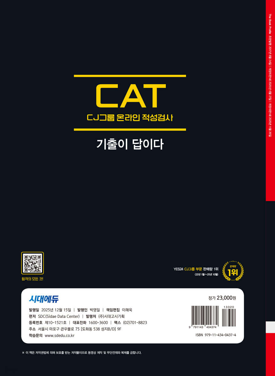 CJ그룹 CAT 온라인 적성검사 합격을 위해 시대에듀는 『2026 최신판 시대에듀 기출이 답이다 CJ그룹 CAT 온라인 적성검사』를 출간하였다.