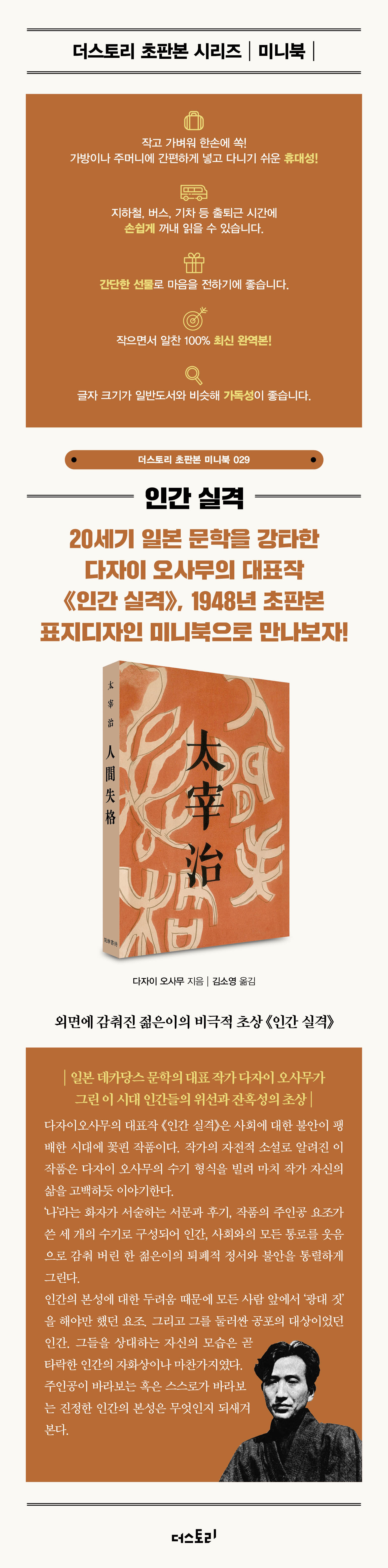 요조는 시골의 부잣집에서 태어난다. 너무 순수하여 세상에 잘 적응하지 못하고 인간 사회에서 속이면서도 조금의 상처도 받지 않고 살아가는 인간에 대해 공포를 느낀다. 이 세상에서의 허위와 속박에 반발하면서도 독립할 자신이 없어 파멸해 가는, 인간으로서 실격해 가는 과정을 수기 형식으로 그린 작품이다. 요조는 도쿄의 고등학교로 진학하고, 술, 담배, 매춘부, 전당포 좌익사상을 알게 되고 그것들이 일시적으로나마 기분을 달랠 수 있는 수단임을 알아 간다. 자신이 모든 물건을 팔아가며 그런 생활을 탐닉하던 중 조금도 의심하지 않았던 순수한 내연의 처가 강간당하면서 결정적인 타격을 입고 자실을 기도하지만 끝내 실패하는데…….
