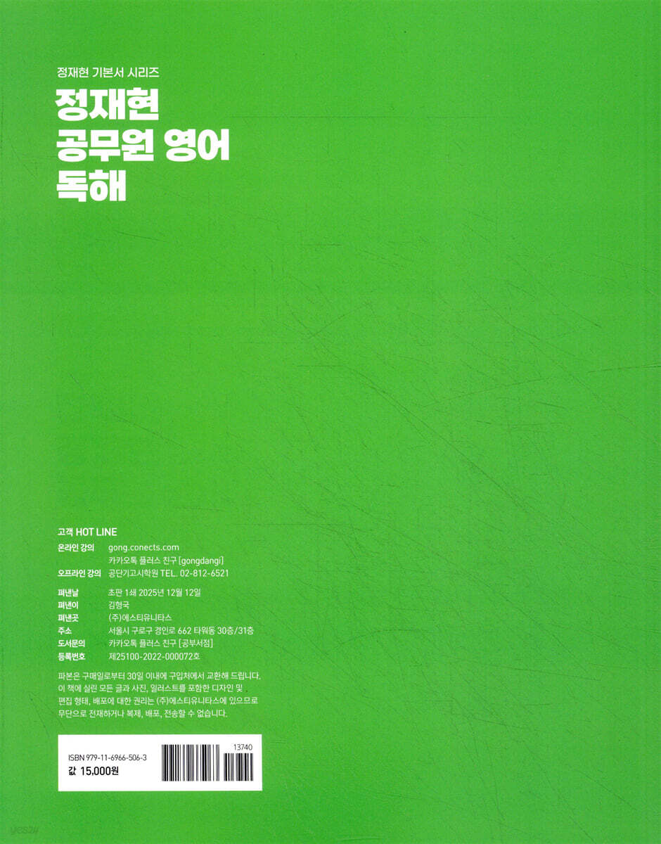 Section 1 이메일 1. 이메일의 형태적 특성 2. 이메일의 내용적 특성 3. 이메일 빈출 질문 유형 및 문제풀이 전략 Section 1 연습문제 Section 1 실전 TEST 이메일 필수 어휘 이메일 필수 어휘 필수 관용 표현 정리 ‘범위’를 나타내는 표현 ‘방법’을 나타내는 표현 행사 입장/티켓 표현 Section 2 안내문 및 웹페이지 1. 안내문의 형태적 특성 2. 웹페이지의 형태적 특성 3. 안내문/웹페이지의 내용적 특성 4. 안내문/웹페이지 빈출 질문 유형 및 문제풀이 전략 Section 2 연습문제 Section 2 실전 TEST 안내문 및 웹페이지 필수 어휘 안내문 및 웹페이지 필수 어휘 대조 표현 숫자 표현 오답 유도 동사 바꿔치기 유형 정리표 Section 3 동의어 1. 주요 출제 내용 2. 풀이 전략 3. 필수 암기 동의어 리스트 Section 3 실전 TEST CHAPTER 2 중심 내용 파악하기 Section 1 지문의 주제/요지 1. 문제 풀이 전략 2. 오답의 전형적인 특징 Section 1 실전 TEST Section 2 흐름상 어색한 문장 찾기 1. 문제 풀이 전략 2. 흐름상 어색한 문장의 대표적 특징 Section 2 실전 TEST CHAPTER 3 전개 구조·논리 파악하기 Section 1 문장 삽입/순서 배열 1. 문장 삽입 유형 2. 순서 배열 유형 3. 문장 삽입 및 순서 배열 유형 공통 전략 Section 1 실전 TEST Section 2 빈칸 추론 1. 문제 풀이 전략 2. 빈칸 추론 오답의 전형적인 특정 Section 2 실전 TEST 정답과 해설 |