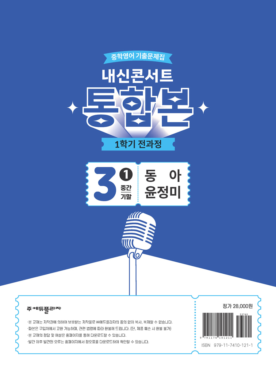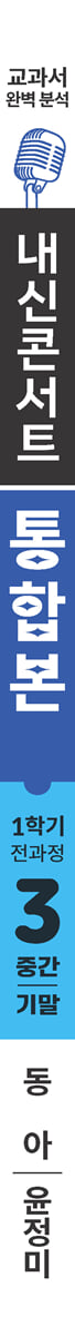 1) 어휘 & 어구 Vocabulary 2) 의사소통 Communication 3) 문법 Grammar 4) 본문 Reading 5) 기타 지문 All the Text 6) 영역별 문제 7) 중간·기말고사 리허설 1회 / 2회 8) 고난도 문제 9) 서술형 문제 10) 본문 암기 워크북 앙코르 LESSON 2. Food for the Heart 1) 어휘 & 어구 Vocabulary 2) 의사소통 Communication 3) 문법 Grammar 4) 본문 Reading 5) 기타 지문 All the Text 6) 영역별 문제 7) 중간·기말고사 리허설 1회 / 2회 8) 고난도 문제 9) 서술형 문제 10) 본문 암기 워크북 앙코르 LESSON 3. Stories of English Words and Expressions 1) 어휘 & 어구 Vocabulary 2) 의사소통 Communication 3) 문법 Grammar 4) 본문 Reading 5) 기타 지문 All the Text 6) 영역별 문제 7) 중간·기말고사 리허설 1회 / 2회 8) 고난도 문제 9) 서술형 문제 10) 본문 암기 워크북 앙코르 LESSON 4. Be a Smart Spender 1) 어휘 & 어구 Vocabulary 2) 의사소통 Communication 3) 문법 Grammar 4) 본문 Reading 5) 기타 지문 All the Text 6) 영역별 문제 7) 중간·기말고사 리허설 1회 / 2회 8) 고난도 문제 9) 서술형 문제 10) 본문 암기 워크북 앙코르 [특별 부록] 실전 모의고사 LESSON 1. Follow Your Dream 1) 3학년 1학기 중간고사대비 동아(윤정미) 1과 1회 2) 3학년 1학기 중간고사대비 동아(윤정미) 1과 2회 LESSON 2. Food for the Heart 1) 3학년 1학기 중간고사대비 동아(윤정미) 2과 1회 2) 3학년 1학기 중간고사대비 동아(윤정미) 2과 2회 LESSON 3. Stories of English Words and Expressions 1) 3학년 1학기 중간고사대비 동아(윤정미) 3과 1회 2) 3학년 1학기 중간고사대비 동아(윤정미) 3과 2회 LESSON 4. Be a Smart Spender 1) 3학년 1학기 중간고사대비 동아(윤정미) 4과 1회 2) 3학년 1학기 중간고사대비 동아(윤정미) 4과 2회 |