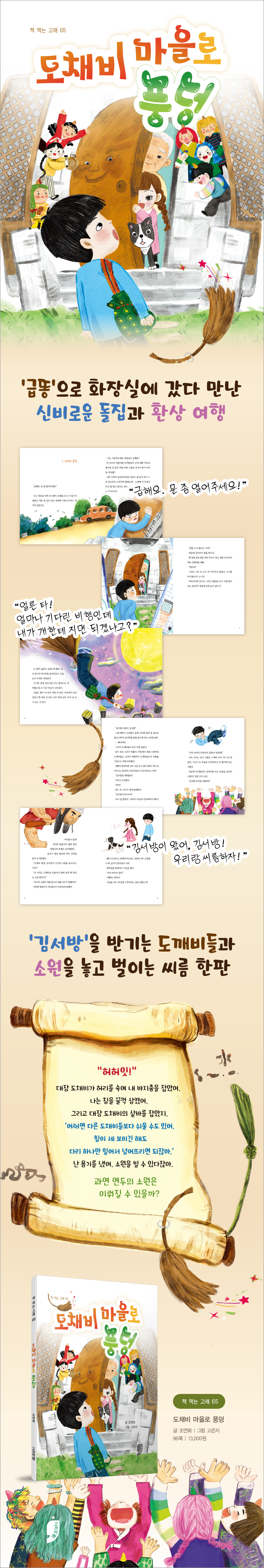 작품은 아이들 누구나 품고 있는 ‘소원’이라는 익숙한 소재와 함께 신비로운 분위기의 돌집과 아이들이 좋아하는 도깨비를 통해 유쾌하고 박진감 있게 이야기를 펼쳐냅니다. 그리고 소원은 단순한 바람을 넘어 가족과 그리움, 사랑과 배려를 녹여내고 있습니다. 연두가 품고 있는 가족에 대한 사랑과 정서는 아이들 누구나 공감하는 현실의 감정입니다. 그 안에는 섬세하고 따뜻한 마음이 흐르고, 다른 세계로의 여행은 환상적이면서도 현실과 동떨어지지 않게 친근하고 정겹습니다. 모험과도 같은 연두의 환상 여행과 그 안에서 이뤄지는 만남과 경험, 그리고 맞닥뜨린 소원 앞 연두의 마음은 마치 내 마음인 듯 다가옵니다. 씩씩하게 거침없이 모험하는 연두의 용기와 소원을 따라가다 보면 누구나 마음이 살찌고 생각이 자라나게 됩니다. |