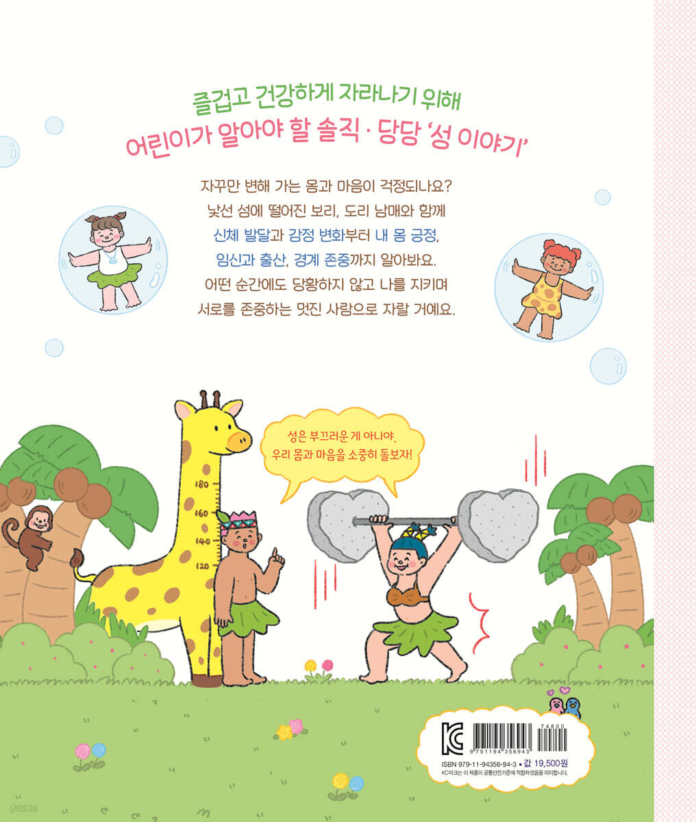 궁금했던 성을 쉽고 재밌게 익혀요! 바닷가에 피서를 온 보리와 도리네 가족. 보리와 도리는 수영복 차림인 어른들의 몸을 보고 호기심이 생겨 부모님께 이것저것 물어봅니다. 하지만 부모님은 부끄럽다는 듯 화제를 돌리기만 하지요. 보리와 도리가 실망하던 순간, 갑자기 밀려온 파도에 휩쓸려 둘은 낯선 ‘태초의 섬’에 도착하게 됩니다. 그곳에는 보리와 도리보다 좀 더 나이가 많은 ‘삐삐’와 ‘또또’, 그리고 삐삐와 또또의 부모님인 ‘존’과 ‘메리’까지, 네 명의 가족이 살아가고 있었어요. 태초의 섬에서 보리와 도리는 환영을 받으며 잠시 머물게 됩니다. 원주민처럼 자연과 어울려 사는 이 가족과 함께 지내는 동안 보리와 도리는 마음속에만 담아 두었던 질문들을 하나둘 꺼내 놓기 시작하지요. “내 몸이 부끄러운데 어떡해요?” “몸에도 이름이 있다고요?” “씻는 게 그렇게 중요한가요?” 보리와 도리는 과연 변화해 가는 몸과 마음을 이해하고, 무사히 집으로 돌아갈 수 있을까요? 사춘기를 앞둔 어린이들을 위한 친절하고 따뜻한 성교육 Q&A 왼쪽 페이지에는 네 컷 만화와 함께 보리와 도리의 질문이, 오른쪽 페이지에는 태초의 섬 가족이 들려주는 명확한 답변이 실려 있어 내용이 직관적이고 쉽게 읽힙니다. 풍부한 그림과 차근차근 이어지는 설명 덕분에 성에 대한 개념이 자연스레 자리 잡혀요. 섬 가족은 옆집 형이나 언니처럼, 때론 다정한 이모나 삼촌처럼 어린이의 마음에 꼭 맞춘 어조로 이야기해 줍니다. 친절한 설명을 통해 어린이들은 몸의 명칭과 기능, 위생, 사춘기 감정 변화부터 내 몸 긍정, 이성 친구와의 관계, 임신과 출산, 경계 존중, 성범죄 대처법에 이르기까지 꼭 필요한 내용을 균형 있게 배우게 되지요. 이 책은 “모든 몸은 저마다 다르게 태어난 소중한 역사”이며, “사춘기는 성호르몬이 보내는 ‘어른이 되는 중!’이라는 신호”이고, “몸과 마음이 함께 자라날 때 어른이 된다”는 메시지를 전달해요. 단순한 지식 전달을 넘어서 성에 대한 건강한 태도와 시선을 기르는 데 초점을 두어, 어떠한 상황에서도 당황하지 않고 자신을 지키는 ‘마음의 근육’을 키울 수 있을 것입니다. 산부인과 간호사 출신 이주윤 작가 × tvN 〈유퀴즈〉 화제의 성교육 전문가 배정원 교수의 만남! 이 책을 쓴 이주윤 작가는 산부인과 간호사로 일한 경험을 바탕으로, 어린이의 눈높이에 꼭 맞는 친절한 성 지식을 그림과 이야기로 풀어냈습니다. 이 책을 감수한 배정원(행복한성문화센터 대표) 교수는 다수의 성교육 도서와 방송을 통해 잘 알려진 전문가로, 책의 내용 하나하나를 꼼꼼하게 검토해 신뢰도를 더했습니다. 덕분에 어린이들은 정확하고 안전한 성 지식과 개념을 체계적으로 익힐 수 있고, 부모님과 선생님도 안심하고 권할 수 있는 초등 성 교양서가 탄생했습니다. 왜곡된 정보가 넘쳐나는 오늘날의 환경 속에서, 하루가 다르게 자라나는 우리 아이들에게 성에 대한 올바른 길라잡이가 되어 주는 책이랍니다. *초등 교과 연계 3학년 도덕 1. 〈나와 너, 우리 함께〉 3학년 도덕 6. 〈생명을 존중하는 우리〉 5학년 체육 1. 〈건강하게 성장해요〉 6학년 2학기 과학 4. 〈우리 몸의 구조와 기능〉 |