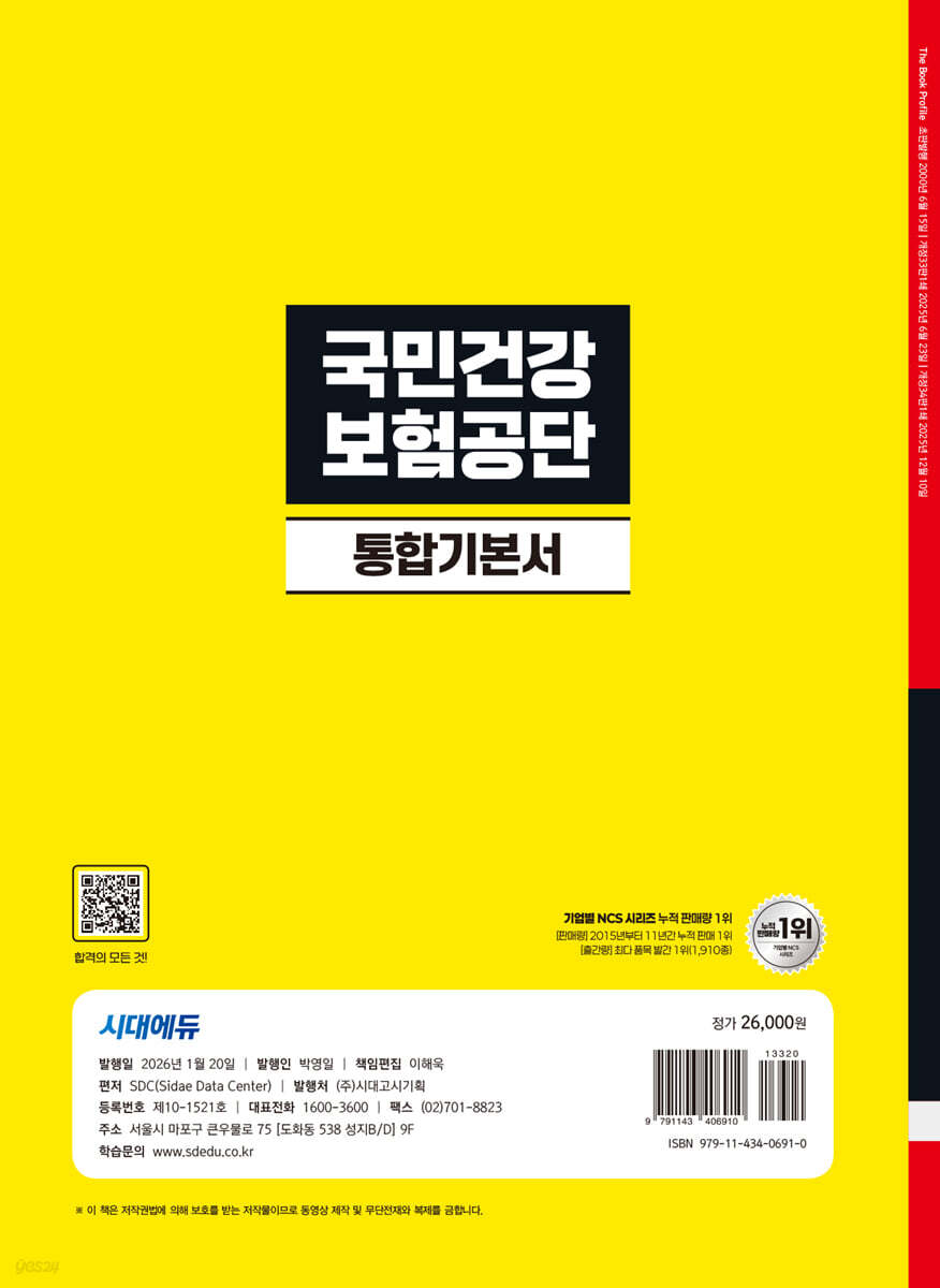 사회보장 중추기관으로 국민의 건강을 지키고 삶의 질을 높이기 위해 노력하는 국민건강보험공단은 2026년에 신규직원을 채용할 예정이다. 국민건강보험공단 채용절차는 「공고 및 접수 → 서류심사 → 필기시험 → 인성검사 → 면접시험 → 수습 임용」 순서로 진행된다. 필기시험은 직업기초능력과 직무시험(법률)으로 진행된다. 그중 직업기초능력은 의사소통능력, 수리능력, 문제해결능력 총 3개의 영역을 평가하며, 직무시험은 직렬별로 국민건강보험법, 노인장기요양보험법 중 1개의 영역을 평가하므로 반드시 확정된 채용공고를 확인해야 한다. 또한, 필기시험 고득점자 순으로 선발인원의 2배수를 선발하여 인성검사 및 면접시험을 진행하므로 고득점을 받기 위해 다양한 유형에 대한 폭넓은 학습과 문제풀이능력을 높이는 등 철저한 준비가 필요하다.
