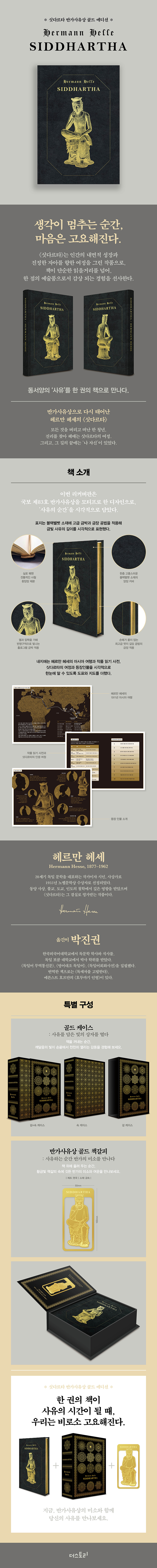 독일의 대문호 헤르만 헤세의 영혼이 투영된 자전 소설 인도의 고위 성직자 계급인 브라만의 아들 싯다르타는 더 이상 아버지로부터, 그 밖의 스승들로부터 배우고 또 배워도 어딘가 채워지지 않음을 느낀다. 그래서 부모님의 반대에도 불구하고 친구 고빈다와 함께 출가하여 떠돌아다니며 수행하는 사마나들을 찾아가 제자로 받아 달라고 간청한다. 싯다르타는 사마나가 되어 끊임없이 새로운 것을 익히고 수행하고, 무아가 되어 또 다른 존재가 되어 보기도 하지만, 여전히 가슴속 깊은 곳에 채워지지 않는 게 있음을 느낀다. 그 즈음 싯다르타와 고빈다는 열반의 경지에 이르렀다는 고타마에 관한 소문을 듣고는 사마나들에게 이별을 고하고 길을 나선다. 고타마의 가르침에 깊이 감명받은 고빈다는 곧바로 고타마의 제자가 되기를 자청하지만, 싯다르타는 고타마의 가르침만으로 자신이 해탈할 수 없다고 생각하며 고빈다와 헤어지고 만다. 이후로 싯다르타는 인생의 가장 밑바닥에서부터 자아를 알아 가기로 결심하고 방탕한 생활을 시작하게 되는데……. |
