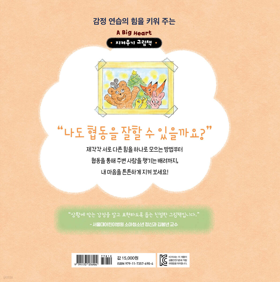 7세 고시, 4세 고시라는 말이 등장할 정도로 아이들의 사회생활과 교육이 일찍 시작되고 있다. 자신을 감싸 주던 따뜻한 가정에서 벗어나 사회생활을 시작한 아이는 다른 사람과 마음을 주고받으면서 따뜻한 정을 느끼기도 하고, 마음을 쓰며 상처를 받기도 한다. 한 기사에 따르면, 3~5세 아이들이 정서적 불안과 또래 관계에 어려움을 겪는 일이 증가했다고 한다. 또한 연세대학교 의과대학의 엄소영 교수는 “이 시기에 심한 스트레스를 받으면 인지 발달과 정서적 안정에 부정적인 영향을 미칠 수 있다”고 말했다. 사회에 나간 아이들은 다른 사람과 어울리며 하루에도 수많은 일들을 겪는다. 그 수많은 상황 속에서 아이들이 겪는 모든 감정은 자연스러운 것이다. 하지만 때로 강한 감정은 마음의 문제를 일으키기도 한다. 문제를 안전하게 해결하려면 아이가 성장하며 점점 커지는 마음을 스스로의 힘으로 잘 지키는 것이 무엇보다 중요하다. 자신의 마음을 지키지 못하면 다른 사람에게 휘둘릴 수도 있고, 자신이 진짜 원하는 것을 깨닫기가 어렵기 때문이다. 자신의 마음을 잘 지키고 나면 반대로 한 뼘 더 성장한 자신을 느낄 수 있다. 〈A Big Heart 지켜주기 그림책〉 시리즈는 마음의 변화가 찾아왔을 때 자신의 마음이 무엇인지 알고, 그것을 어떻게 받아들여야 하는지, 어떻게 표현해야 할지를 배울 수 있다. 그림책을 읽으며 자신의 마음을 표현하는 방법을 자연스럽게 연습할 수 있어, 진짜 마음의 문제가 찾아왔을 때 아이는 당황하지 않고 당당하게 나아갈 수 있을 것이다. 단단하게 성장한 마음은 크고 작은 상처로부터 아이를 지켜 주는 방패가 되기도 한다. 이 책을 통해 아이가 보다 긍정적이고 단단한 마음으로 성장하는 데 도움이 되길 바란다. 마음을 건강하게 지켜 주는 〈A Big Heart 지켜주기 그림책〉 시리즈 을파소에서 오랫동안 독자들에게 큰 사랑을 받아 온 〈A BIG HUG 안아주기 그림책〉에 이어 〈A Big Heart 지켜주기 그림책〉 시리즈가 새롭게 발간되었다. 새로 발간되는 〈A Big Heart 지켜주기 그림책〉은 서울대학교어린이병원 소아청소년 정신과의 김붕년 교수가 감수했다. 유아기는 언어를 통해 ‘생각하는 뇌를 만드는 시기’이다. 언어를 사용해 생각을 펼치고, 감정을 표현하며, 타인과 상호작용 하는 것을 배우는 시기라는 뜻이다. 하지만 아이들은 감정을 느끼는 것이 미숙하다. 감정의 변화를 알아차려도 그 감정이 무엇인지 아는 것은 어렵다. 게다가 그 감정을 언어화하여 인식하고 표현하는 것은 그보다 훨씬 더 어려운 일이다. 상당한 경험의 축적과 연습을 요구하는 일이기 때문이다. AI가 등장하고, 디지털기기가 아무리 발달해도 결국 사람은 다른 사람들과 어울려야 하는 사회적 동물이다. 내 마음의 변화를 느끼고, 그 마음의 변화를 안전하게 표현한다면 인간관계도 원활하게 맺을 수 있을 뿐더러 무엇보다 중요한 자신의 마음을 평안하게 지킬 수 있다. 〈A Big Heart 지켜주기 그림책〉 시리즈는 자신이 느낀 인식하고 표현하는 연습을 할 수 있도록 돕는다. 특히 관계 맺기, 슬픔, 궁금증, 거절, 미안함 등 사회에 나아간 아이가 마음의 근육을 단단하게 만들면서 건강한 관계를 맺도록 돕는 주제들을 주로 다루었다. 곰, 토끼, 오리 같은 친근한 동물 캐릭터와 노래하는 새, 하늘에서 떨어지는 비, 재미있는 게임, 보호해 주는 울타리, 단단하게 얼은 얼음 같은 명쾌한 비유를 통해 유아가 이해할 수 있는 눈높이에서 이야기를 풀어냈다. 책 마지막에는 활용 가이드를 실어 부모님이나 선생님이 아이와 함께 읽은 내용에 대해 이야기하고, 질문을 통해 대화를 이어 갈 수 있도록 구성했다. 교과연계 만 3~5세 누리과정 사회단계(나를 알고 존중하기, 더불어 생활하기) 1학년 1학기 통합) 1. 학교 / 1학년 2학기 통합) 2. 약속 |