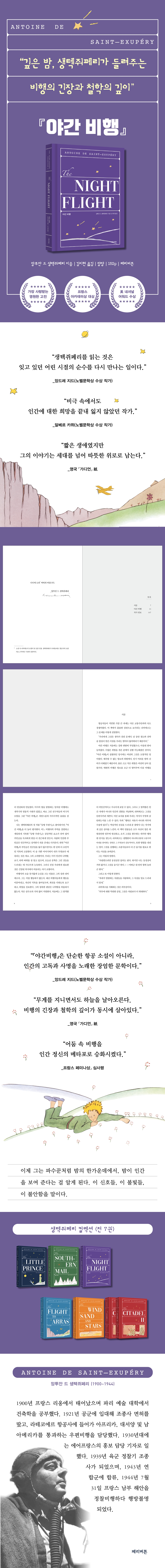 “《야간 비행》은 어둠 속 비행을 인간 정신의 메타포로 승화시켰다.” - 프랑스 페미나상 심사평