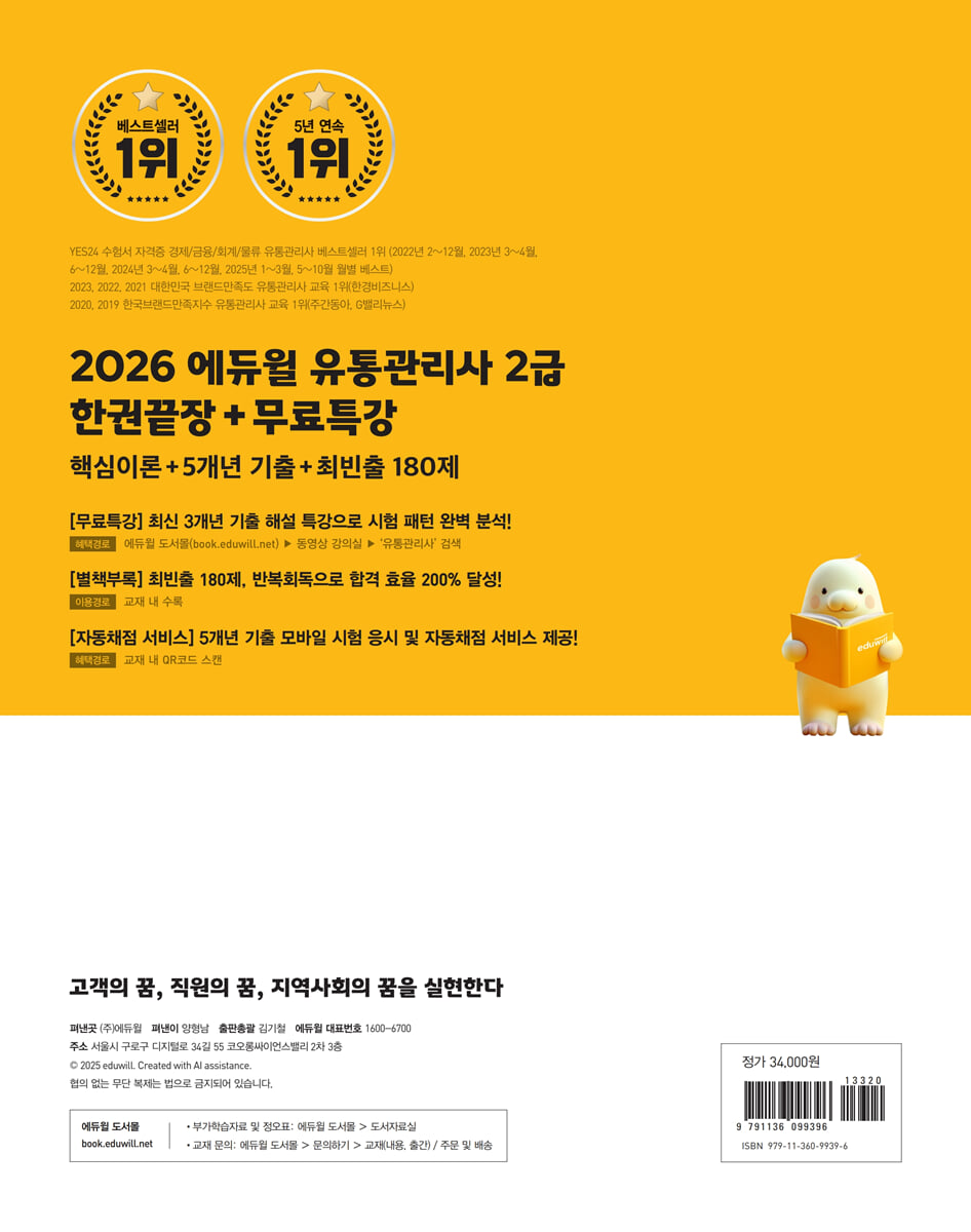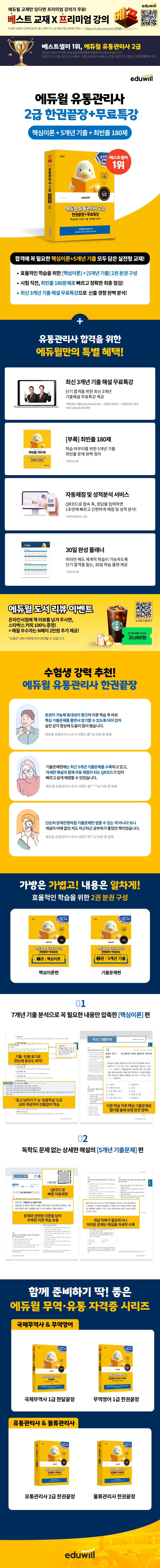 Why Eduwill? 에듀윌이 만들면 다릅니다. 단기합격을 위한 최적 구성 Learning Strategy 유통관리사 2급, 과목 분석 및 학습 전략 유통관리사 2급 시험의 모든 것 SUBJECT 01 유통·물류 일반관리 PART 01 유통의 이해 PART 02 유통경영전략 PART 03 유통경영관리 PART 04 물류경영관리 PART 05 유통기업의 윤리와 법규 SUBJECT 02 상권분석 PART 01 유통상권조사 PART 02 입지분석 PART 03 개점전략 SUBJECT 03 유통마케팅 PART 01 유통마케팅 전략기획 PART 02 디지털마케팅 전략 PART 03 점포관리 PART 04 상품판매와 고객관리 PART 05 유통마케팅 조사와 평가 SUBJECT 04 유통정보 PART 01 유통정보의 이해 PART 02 지식경영 PART 03 주요 유통정보화 기술 및 시스템 PART 04 유통정보의 관리와 활용 PART 05 전자상거래 [5개년 기출] 2025년 3회 기출문제 2025년 2회 기출문제 2025년 1회 기출문제 2024년 3회 기출문제 2024년 2회 기출문제 2024년 1회 기출문제 2023년 3회 기출문제 2023년 2회 기출문제 2023년 1회 기출문제 2022년 3회 기출문제 2022년 2회 기출문제 2022년 1회 기출문제 2021년 3회 기출문제 2021년 2회 기출문제 2021년 1회 기출문제 |