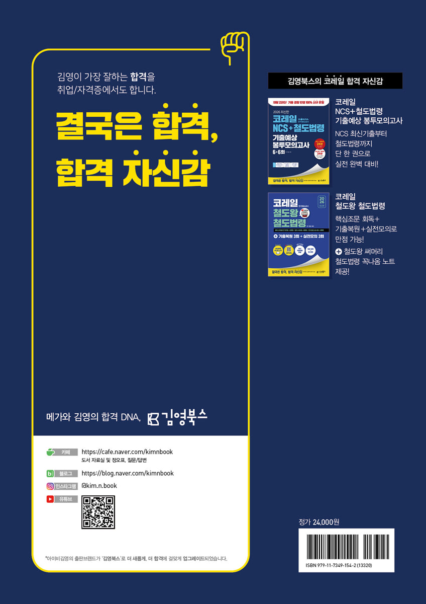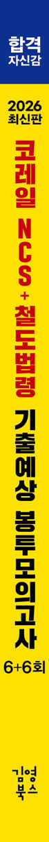 코레일 NCS 기출복원 모의고사(2025년 9월 13일 [오후] 시행) 코레일 NCS 실전모의고사 1회 코레일 NCS 실전모의고사 2회 코레일 NCS 실전모의고사 3회 코레일 NCS 실전모의고사 4회 코레일 철도법령 기출복원 모의고사(25년 상·하반기, 24년 하반기) 코레일 철도법령 실전모의고사(1~3회) 정답과 해설 OMR [특별부록] 코레일 채용&NCS 기출분석 가이드북 코레일 응용수리 기출유형 집중공략집 코레일 철도법령+OX퀴즈 |