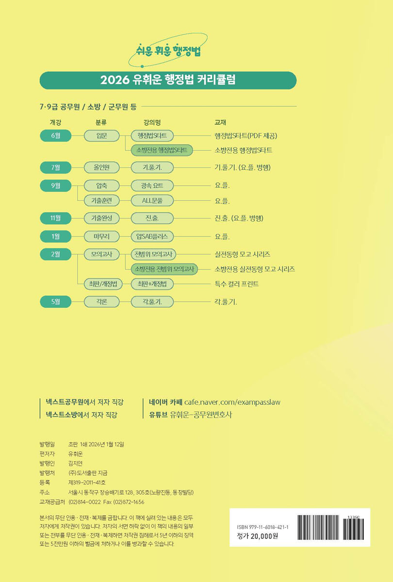 『2026 유휘운 행정법총론 백점용 판례 플러스』(백.플.)은 초고득점 내지 한 치의 오차도 없는 완벽한 합격을 목표로 하는 수험생들을 위해 제작된 미기출 판례 Premium 교재입니다. 본서의 특징은 다음과 같습니다.