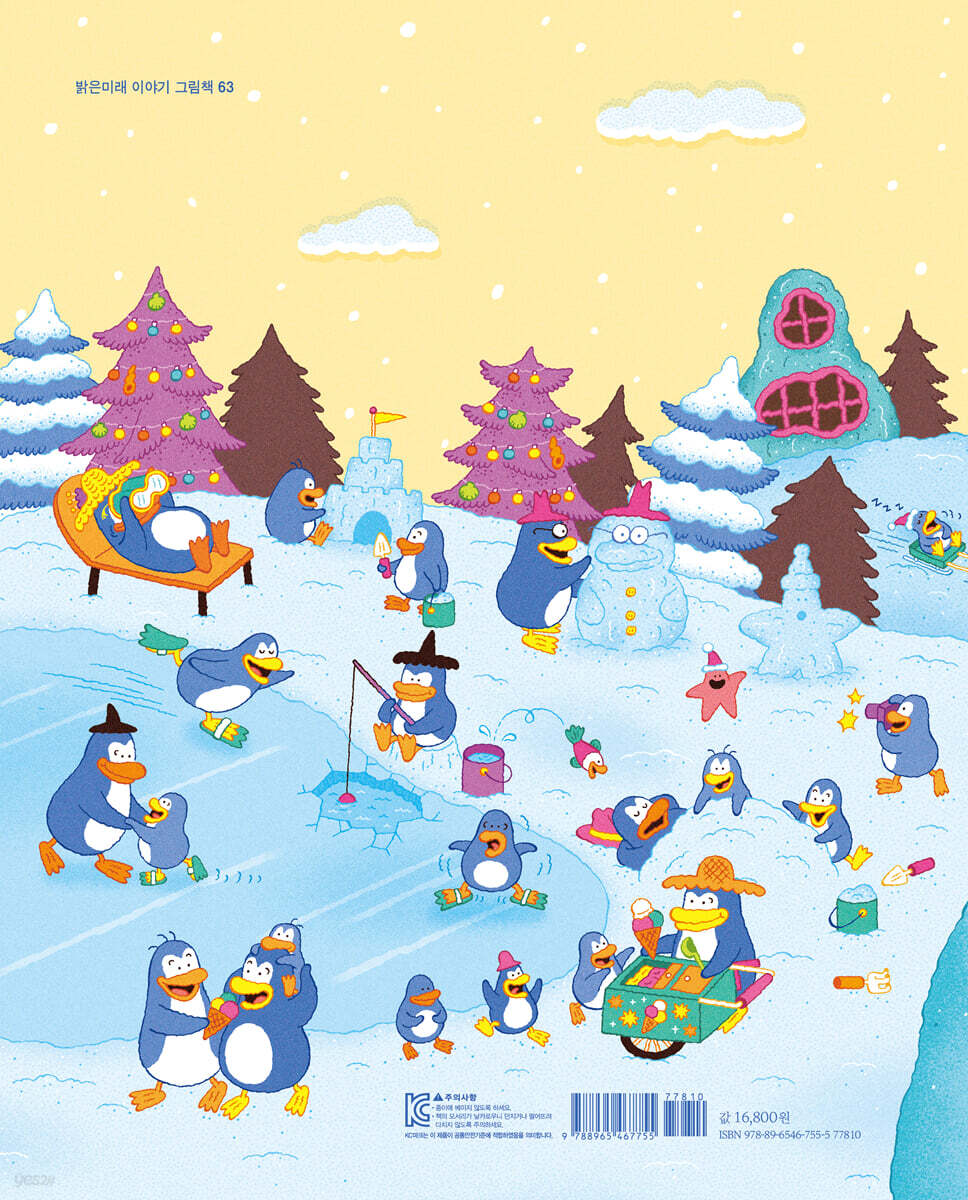주인공 찹찹은 유난히 커다란 발 때문에 걸을 때마다 ‘찹찹’ 소리가 나고, 친구 포니의 생일 파티에서 수영장 물을 모두 넘치게 만드는 실수를 저지르며 처음으로 자신의 발을 창피하게 느끼게 된다. 남들과 다른 모습 때문에 스스로를 부끄러워하며 혼자 집으로 돌아오던 찹찹이었지만, 마을에 닥친 절체절명의 위기 앞에 ‘커다란 발’은 마을을 구하는 가장 특별한 힘이자 영웅의 상징으로 거듭난다. 이 이야기는 나의 다름이 결코 틀린 것이 아니라, 세상에 하나뿐인 나만의 소중한 장점이 될 수 있다는 진리를 일깨워 준다. 콤플렉스를 용기로 승화시킨 찹찹의 여정은 자라나는 아이들에게 스스로를 긍정할 수 있는 따뜻한 위로와 용기를 전한다. 귀엽고 유쾌한 펭귄들과 반전이 있는 이야기 책장을 열면 눈이 소복소복 내린 평화로운 마을에 귀엽고 사랑스러운 펭귄들이 모여 사는 모습이 들어온다. 그중에서도 커다란 오리발 같은 발자국을 남기며 등장하는 ‘찹찹’은 마을에서 가장 눈에 띄는 존재다. 바다표범 강도단이 찹찹의 거대한 발자국만 보고 겁을 먹어 도망가는 장면은 독자들에게 유쾌한 웃음을 선사하며, 큰 발 때문에 본의 아니게 화분을 차거나 가게 물건을 넘어뜨리는 찹찹의 실수는 캐릭터의 사랑스러움을 더해 준다. 자신의 큰 발 때문에 찹찹은 잠시 주눅 들고 입맛을 잃기도 하지만, 다시 용기를 내어 마을을 향해 달려 나가는 모습에 독자는 자신들도 모르게 진심 어린 응원을 보낼 것이다. 마을을 구한 뒤 친구들과 어울려 스키를 타고 신나게 다이빙을 즐기는 찹찹과 펭귄들의 아기자기한 모습은 보는 이의 마음까지 즐겁게 물들인다. 역동감 넘치는 연출과 따뜻한 시선 평화롭던 소복소복 마을에 산꼭대기의 바위가 흔들거리며 굴러떨어지는 거대한 위기가 닥치면서 이야기는 긴장감 넘치게 흘러간다. 임다와 작가는 작은 바위가 눈덩이처럼 커져 마을을 위협하는 긴박한 상황을 역동적인 구도로 그려 내며 몰입감을 높였다. 특히 찹찹이 누구도 흉내 낼 수 없는 자신만의 유연한 발을 이용해 통쾌하게 마을을 구하는 과정은 짜릿한 쾌감을 선사한다. 작가는 사고뭉치이지만 상냥한 찹찹의 일상과 위기 속 영웅적인 활약을 선명하게 대비시키면서도, 인물의 표정과 색감, 주변 분위기를 다채롭고 따뜻하게 표현하여 시각적인 즐거움과 함께 모두가 행복해지는 감동을 완성했다. [ 관련 누리과정 ] 유치원과 친구 나와 가족 |