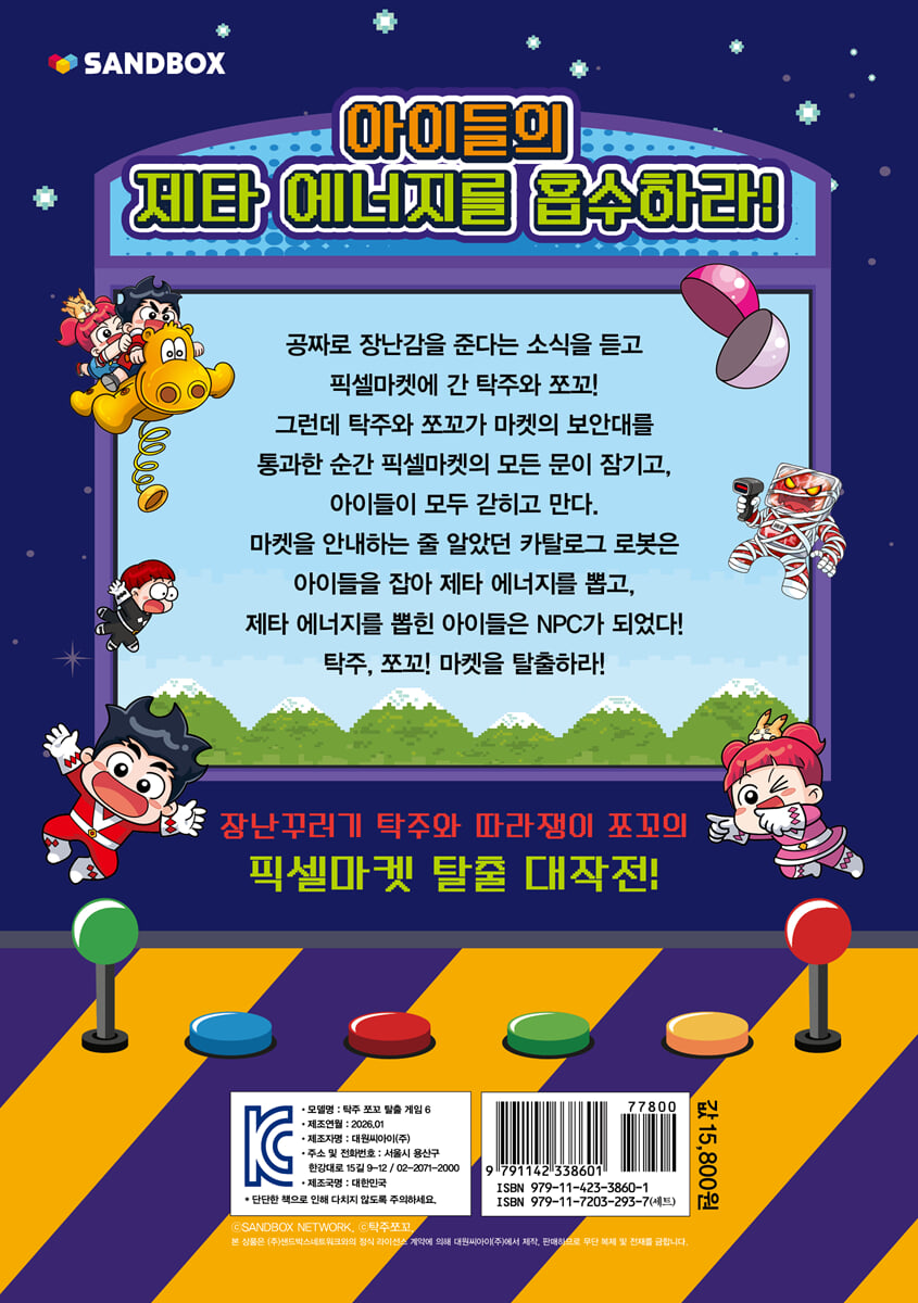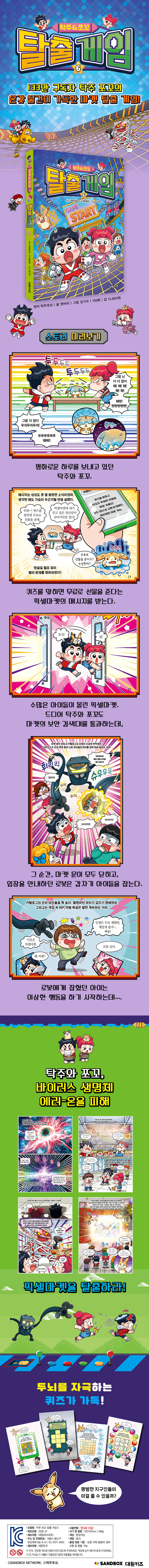 Stage 1 픽셀마켓에 입장하라! Stage 2 식품 매장을 탈출하라! Stage 3 장난감 매장을 탈출하라! Stage 4 익스트림 놀이터를 탈출하라! Stage 5 반려동물 존을 탈출하라! Stage 6 물류 센터를 탈출하라! End 에필로그 |