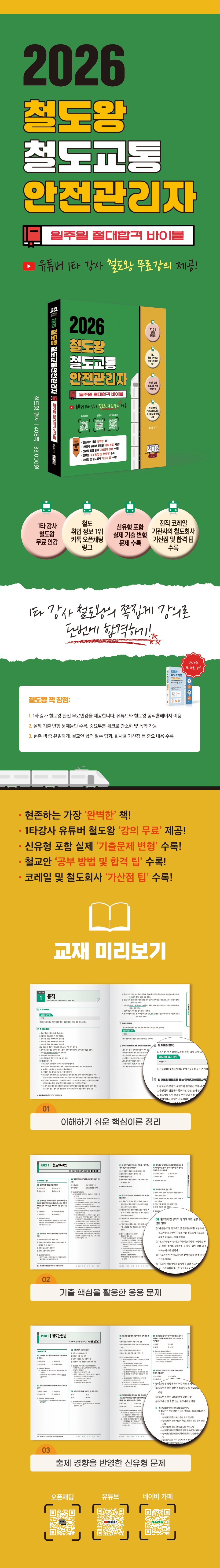 1교시 PART1 철도안전법 ···011 PART2 교통안전법 ···115 PART3 철도산업발전기본법 ···147 2교시 PART1 교통안전관리론 ···169 PART2 철도공학 ···185 PART3 열차운전 ···207 - TEST 합격 필수 기출 변형 문제 1교시 PART1 철도안전법 ···256 PART2 교통안전법 ···292 PART3 철도산업발전기본법 ···303 2교시 PART1 교통안전관리론 ···310 PART2 철도공학 ···329 PART3 열차운전 ···352 - TEST 신유형 완전 대비 문제 1교시 PART1 철도안전법 ···372 PART2 교통안전법 ···386 PART3 철도산업발전기본법 ···391 2교시 PART1 교통안전관리론 ···396 PART2 철도공학 ···399 PART3 열차운전 ···402 |