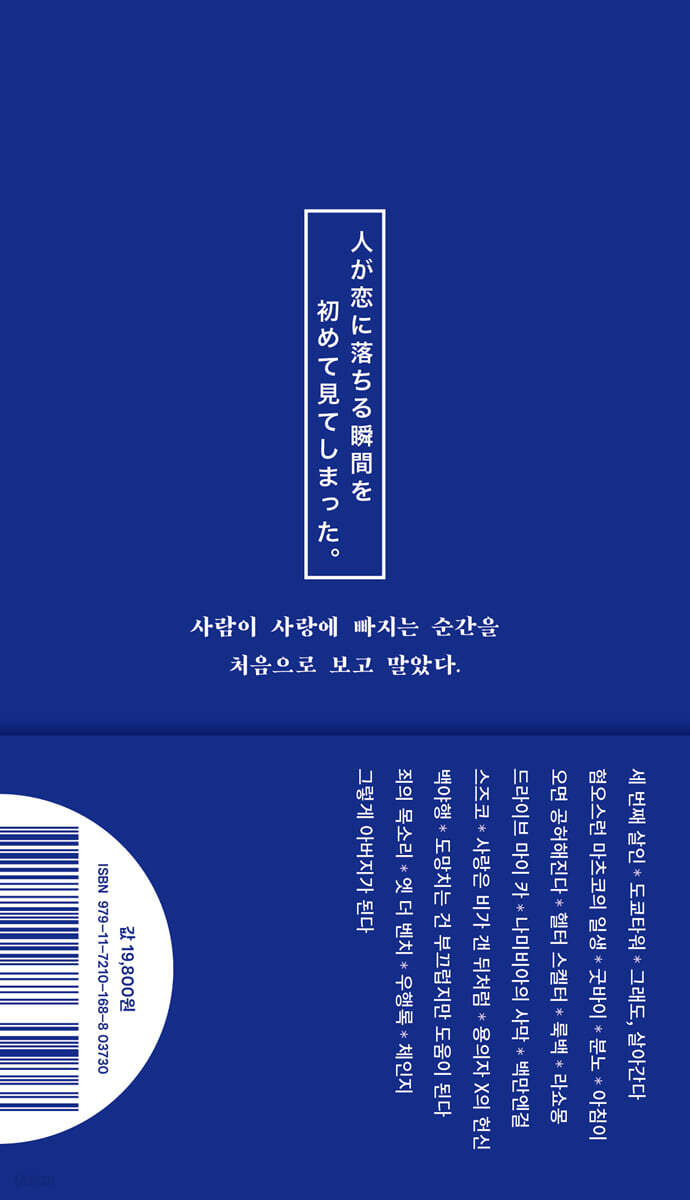책의 구성과 활용법 [1장 입문 코스] 짧고 간단한 문형의 명대사를 읽고 따라 쓰며 일본어 감각을 맛봅니다 퍼펙트 데이즈 평일 오후 3시의 연인 신문기자 태양의 노래 바닷마을 다이어리 비밀 시간을 달리는 소녀 큐어 새 구두를 사야해 악인 언어의 정원 종이달 4월 이야기 나나 카모메 식당 립반윙클의 신부 다만, 널 사랑하고 있어 [2장 초급 코스] 다양한 문형이 등장하는 명대사를 읽고 따라 쓰며 일본어 감각을 키웁니다 배틀로얄 1초 앞, 1초 뒤 라스트 마일 꽃다발 같은 사랑을 했다 해피엔드 그래도 내가 하지 않았어 앙 최고의 이혼 GO 리틀 포레스트 냉정과 열정 사이 지금, 만나러 갑니다 조제, 호랑이 그리고 물고기들 최애 너의 췌장을 먹고 싶어 오렌지 데이즈 괴물 초속 5센티미터 백설공주 살인사건 세상의 중심에서 사랑을 외치다 스트로베리 나이트 사랑이 뭘까 국보 이니시에이션 러브 어느 가족 허니와 클로버 1리터의 눈물 [3장 중급 코스] 깊이 있는 이해가 필요한 명대사를 읽고 따라 쓰며 일본어 감각을 흡수합니다 플랜 75 러브레터 하나와 앨리스 나는 내일, 어제의 너와 만난다 세 번째 살인 도쿄타워 그래도, 살아간다 혐오스런 마츠코의 일생 굿바이 분노 아침이 오면 공허해진다 헬터 스켈터 룩백 라쇼몽 드라이브 마이 카 나미비아의 사막 백만엔걸 스즈코 사랑은 비가 갠 뒤처럼 용의자 X의 헌신 백야행 도망치는 건 부끄럽지만 도움이 된다 죄의 목소리 엣 더 벤치 우행록 체인지 그렇게 아버지가 된다 |