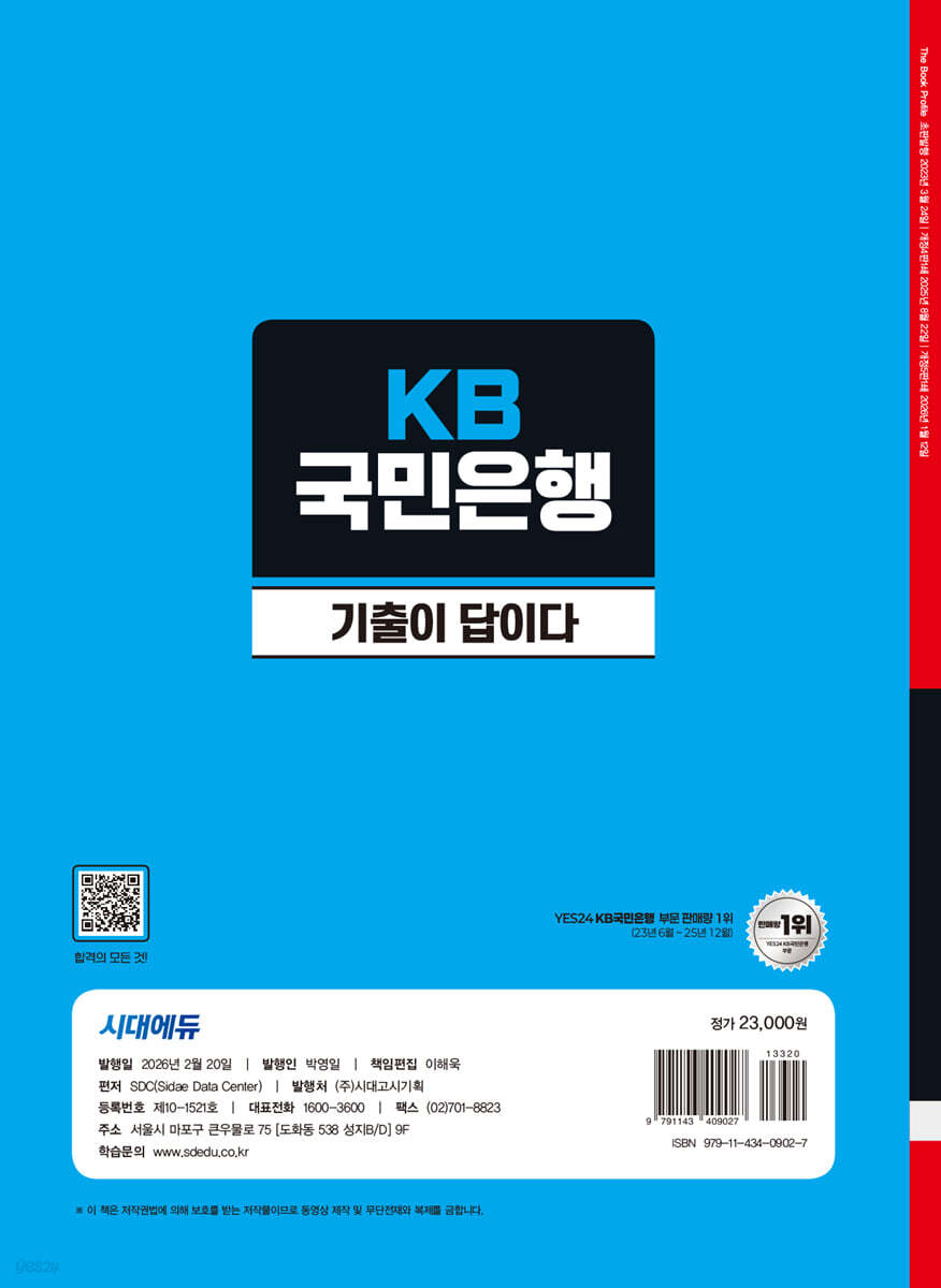KB국민은행은 인재를 채용하기 위해 필기전형을 시행하여 지원자가 업무에 필요한 역량을 갖추고 있는지 평가한다. 이에 시대에듀에서는 KB국민은행 필기전형을 준비하는 수험생들에게 좋은 길잡이가 되어 주고자 『2026 최신판 시대에듀 기출이 답이다 KB국민은행 필기전형』을 출간하였다.