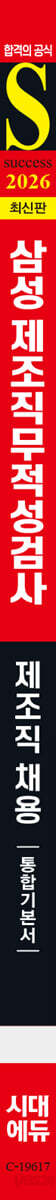 PART 1 제조직무적성검사 CHAPTER 01 기본계산영역 CHAPTER 02 주의집중영역 CHAPTER 03 시각지각영역 CHAPTER 04 이해력영역 CHAPTER 05 유추추론영역 CHAPTER 06 신체반응영역 CHAPTER 07 순서추론영역 PART 2 최종점검 모의고사 제1회 최종점검 모의고사 제2회 최종점검 모의고사 PART 3 인성검사 CHAPTER 01 인성검사 CHAPTER 02 UK작업태도검사 PART 4 면접 CHAPTER 01 이력서 및 자기소개서 작성요령 CHAPTER 02 면접 유형 및 실전 대책 CHAPTER 03 삼성그룹 실제 면접 별책 정답 및 해설 PART 1 제조직무적성검사 PART 2 최종점검 모의고사 |