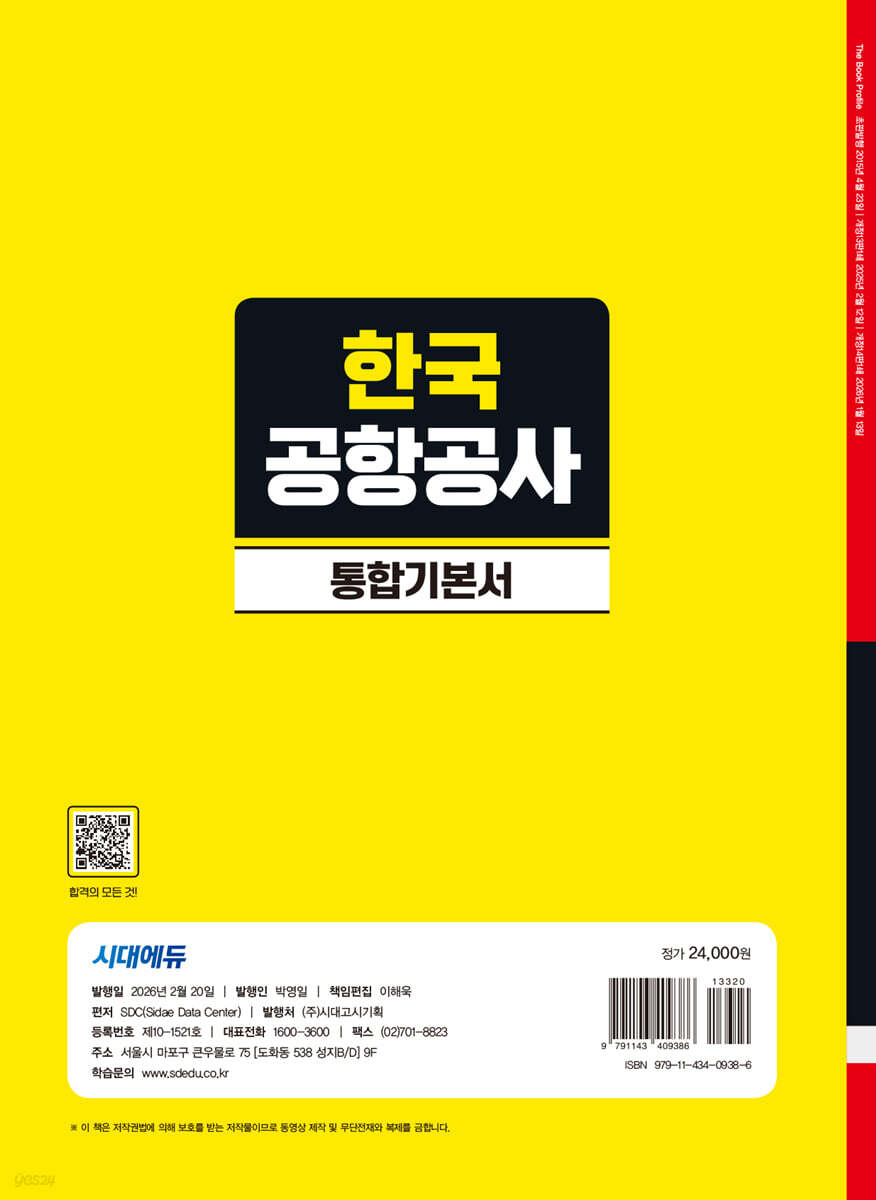 한국공항공사 필기전형 합격을 위해 시대에듀에서는 2026년 채용을 대비하여 『2026 최신판 시대에듀 한국공항공사 통합기본서』를 출간하였다. 2025년 주요 공기업 기출복원문제를 수록하였고, 직업기초능력평가 기출응용문제와 대표기출유형으로 NCS를 철저히 대비할 수 있도록 하였다. 또한 최종점검 모의고사로 실전 감각을 익히고 상세한 해설로 혼자서도 학습이 가능하도록 하였으며, 온라인 모의고사를 무료로 응시할 수 있는 쿠폰을 제공하여 문제 유형에 대한 연습과 함께 자신의 실력을 최종 점검할 수 있도록 하였다. |