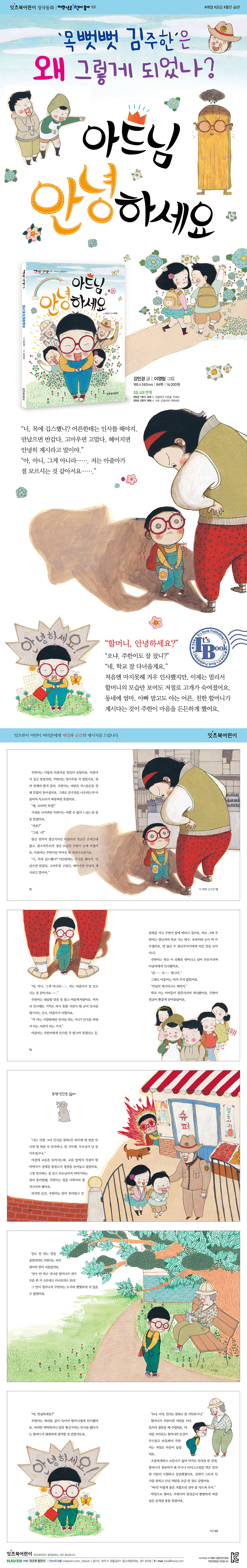 인사 부족은 ‘무례’가 아니라 ‘배움의 공백’ 때문입니다. 인사를 하지 않는 아이를 두고 버릇없다고 판단하기 쉽지만, 많은 경우 아이들은 어떻게 해야 하는지, 왜 해야 하는지를 느끼거나 배우지 못했을 뿐입니다. 어린이들은 말로 감정을 표현하는 데 서툽니다. 따라서 표정, 눈 맞춤, 목소리를 통해서 존중, 호감, 안심의 마음을 전할 수 있기에 ‘인사’가 자신의 감정을 표현하는 연습도 됩니다. 어른들은 왜 그렇게 인사하라고 난리인지 모르겠어요. 인사를 하든 안 하든, 안녕할 사람은 안녕하고 안녕 하지 못할 사람은 안녕하지 못할 텐데, 왜 굳이 그걸 확인하고 물어봐야 하는지 주한이는 좀처럼 이해가 가지 않았어요. “안녕하세요오?” 주한이는 아무도 없는 엘리베이터에서 혼잣말로 인사를 해 보았어요. 진짜 안녕한지 묻는 것처럼 말꼬리를 올려 보았어요. 이상했어요. “안녕하세요오.” 지나가는 말처럼 말꼬리를 내려 보았어요. 역시 이상 했어요. “아유, 몰라! 귀찮아, 귀찮아.” 마침 엘리베이터 문이 열리자, 주한이는 고개를 흔들며 내려 버렸어요. --- 본문 중에서 본격적으로 책을 읽기 시작하는 저학년 어린이들에게 책 읽는 즐거움을 줍니다. 저학년 어린이들에게 적합한 동화 분량과 등장인물의 디테일한 심리 묘사, 유쾌하고 상상력을 자극하는 그림, 흥미로운 이야기 전개가 저학년 어린이들에게 책 읽는 즐거움을 줍니다. [ 초등 교과 연계 ] 2학년 2학기 국어 5. 마음을 짐작해요 3학년 2학기 국어 1. 경험과 관련지어 이해해요 |