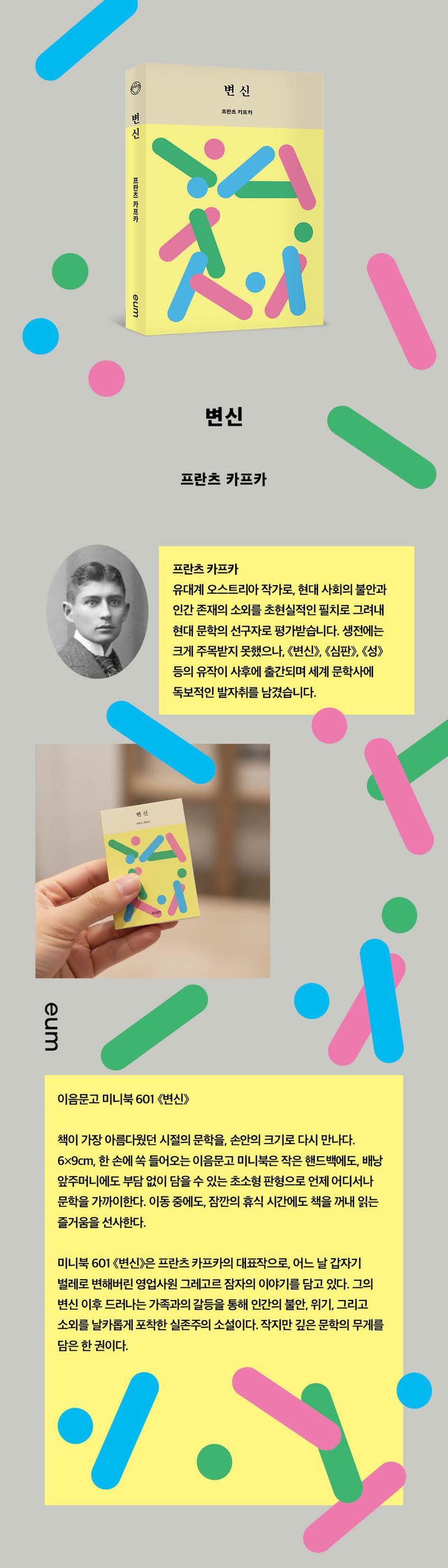 --- p.7 그때는 참 좋았지. 그레고르가 온 식구의 씀씀이를 감당할 만큼 많은 돈을 벌어 와도 그토록 좋았던 시절은, 적어도 그런 반짝거리는 기쁨은 다시 찾아오지 않았다. 식구들뿐 아니라 그레고르 역시 익숙해진 것이다. --- p.67 과일 그릇에서 사과를 집어 주머니에 잔뜩 넣고는 그를 향해 던지고 있었다. 당장은 목표물을 정확히 맞히겠다는 의도가 없는 듯 계속해서 사과가 날아왔다. 작고 빨간 사과가 전기가 통하듯이 바닥을 구르며 서로 부딪쳤다. --- p.97 |