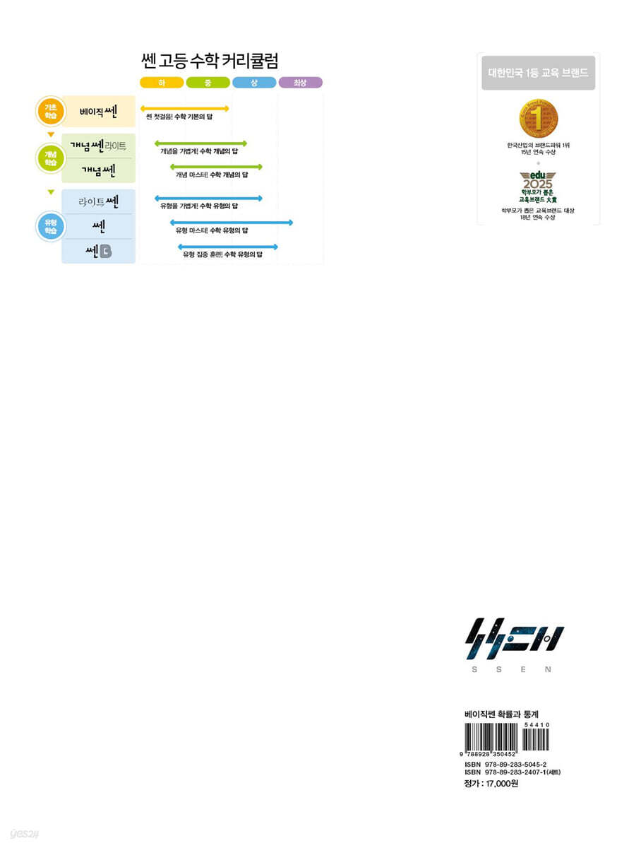 2. 기본&핵심 유형 집중 훈련 3. 기출 문제로 실전 감각 UP! 〈베이직쎈〉은 쉽고, 체계적으로 수학 기본기를 강화할 수 있는 수학 기본기 강화 훈련서입니다. 개념 학습과 기본 문제 반복 훈련으로 기본기를 탄탄하게 다지고, 기본·핵심 유형 집중 훈련을 통해 기본기를 쑥쑥 키운 후, 기출 문제로 기본기를 완성할 수 있도록 하였습니다. 수학 기본기 강화 훈련서 〈베이직쎈〉과 함께 슬기로운 수학 생활을 하시길 바랍니다. |