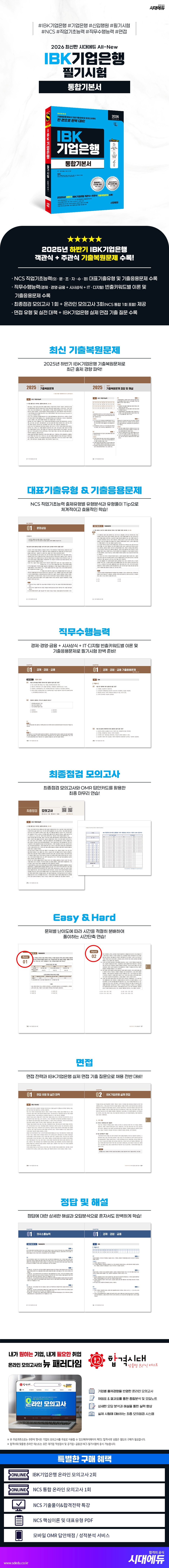 Add+ 2025년 하반기 기출복원문제PART 1 NCS 직업기초능력CHAPTER 01 의사소통능력CHAPTER 02 문제해결능력CHAPTER 03 조직이해능력CHAPTER 04 자원관리능력CHAPTER 05 수리능력CHAPTER 06 정보능력PART 2 직무수행능력CHAPTER 01 경제 · 경영 · 금융CHAPTER 02 시사상식CHAPTER 03 IT · 디지털PART 3 최종점검 모의고사PART 4 면접CHAPTER 01 면접 유형 및 실전 대책CHAPTER 02 IBK기업은행 실제 면접별책 정답 및 해설PART 1 NCS 직업기초능력PART 2 직무수행능력PART 3 최종점검 모의고사
