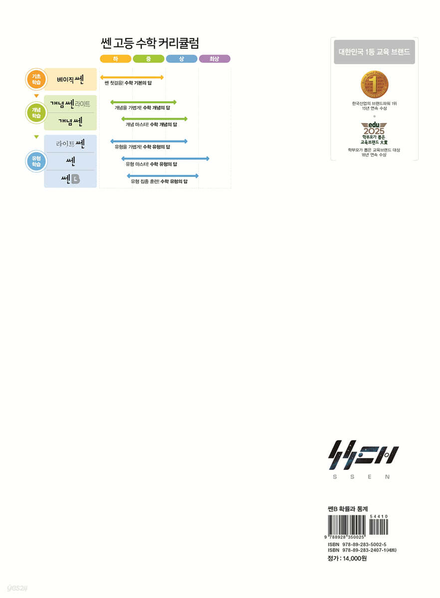 쎈의 C단계가 너무 어렵다면? 쎈을 풀었는데 유형만 다시 풀고 싶다면? 유형을 빠르게 점검하고 싶다면? 정답은 '쎈B'입니다. 쎈B는 쎈의 B단계와 닮은 꼴 문제로 구성되어 있어 쎈과 함께 사용 시 유형 반복 학습이 가능합니다. 쎈B로 이미 아는 유형은 더욱 탄탄하게 다지고 취약한 유형은 보완하여 모든 유형을 완벽히 마스터해 보세요! 효율적이고 완벽한 유형 학습을 위한 쎈B! |