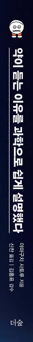 ---「해열 진통제가 위장약과 함께 처방되는 이유는?」 중에서 꼭 알아 둬야 할 점은 감기약은 어디까지나 ‘대증 요법’을 위한 약이라는 사실이다. 즉 감기약은 우리 몸에 나타난 증상을 완화하기 위한 것에 불과하고, 감기의 근본적인 원인인 바이러스를 제거하는 약은 아니다. 감기의 원인은 대부분 바이러스이며, 아데노바이러스?라이노바이러스?코로나바이러스(신종 코로나바이러스와는 다른 종류) 등이 잘 알려져 있다. 그러나 이들 바이러스를 직접 퇴치할 수 있는 효과적인 약은 아직 존재하지 않는다. 감기약의 역할은 고통스러운 증상을 잠시 누그러뜨리는 데 그치며, 우리 몸의 면역 세포가 스스로 바이러스를 무찌르기까지 시간을 벌어 줄 뿐이다. ---「감기약은 정말 감기를 낫게 해줄까?」 중에서 ‘바이러스’라는 말은 라틴어로 ‘독(毒)’을 뜻한다. 근대 세균학의 창시자로 알려진 루이 파스퇴르는 광견병 백신을 개발했지만, 정작 이 병을 일으키는 광견병 바이러스는 발견할 수 없었다. 또한 일본 지폐 1천 엔의 초상화로 잘 알려진 노구치 히데요 역시 황열병 연구에 평생을 바쳤지만, 그 원인인 황열 바이러스를 찾아내지 못했다. 그 이유는 간단하다. 바이러스가 너무 작아서 전자현미경이라는 고해상도 도구가 개발되기 전까지 그 모습을 직접 확인할 수 없었기 때문이다. 이렇게 작은 바이러스는 세포로 이루어진 생명체가 아니다. 바이러스의 몸은 유전 정보를 담은 DNA 또는 RNA와, ‘캡시드’라 불리는 단백질 껍질로 구성되어 있다. 또한 일부 바이러스는 DNA나 RNA가 ‘엔벨로프’라는 지질 성분의 막에 싸인 형태를 취하기도 한다. 엔벨로프는 에탄올에 의해 쉽게 파괴되기 때문에, 이런 종류의 바이러스에는 알코올 소독이 효과적이다. ---「세균보다 훨씬 작은 ‘바이러스’」 중에서 우리 몸이 한 번 감염 후 항체를 만들어도 같은 인플루엔자 바이러스에 다시 감염되는 경우가 자주 있다. 그 까닭은 인플루엔자 바이러스가 변이하기 때문이다. 바이러스는 A형, B형, C형 세 종류가 있으며, 그중 A형과 B형이 중증 감염을 일으키는 것으로 알려져 있다. 변이란 RNA 유전 정보의 일부가 변하는 것을 말하는데, 이 변화에 따라 겉면에 돌출된 HA나 NA의 구조도 달라진다. A형 인플루엔자 바이러스는 16종류의 HA와 9종류의 NA를 지니는데, 이 조합만으로 144종류(16×9)의 바이러스가 존재한다. 이처럼 HA와 NA가 미묘하게 모습을 바꾸기 때문에, 설령 항체가 형성되었다고 해도 바이러스는 새로운 모습으로 다시 우리 몸에 침입한다. ---「인플루엔자 바이러스에 여러 번 감염되는 이유」 중에서 멜라토닌은 이와 같은 수면과 각성의 리듬을 조율하는 호르몬이다. 그러나 생활 습관이 흐트러지면 밤에 멜라토닌 분비량이 감소하면서 불면증으로 이어질 수 있다. 이를 개선하기 위해 2010년에 등장한 것이 멜라토닌 수용체를 자극하는 ‘라멜테온’이다. 이 약은 멜라토닌 자체보다 더 강력하게 수면을 유도하는 효과가 있다. 복용한 라멜테온은 뇌 속 멜라토닌 수용체를 자극해 ‘지금은 밤이다’라는 신호를 뇌에 전달한다. 그에 따라 자연스러운 수면이 유도되고, 수면과 각성의 리듬이 서서히 바로잡힌다. (…) 의존성·내성·낙상 위험이 벤조디아제핀 계열보다 낮아 안전성이 높다는 점도 큰 장점이다. 다만, 수면 유도 효과는 벤조디아제핀 계열 약에 비해 확연히 약하다. 새로운 작용 원리를 지닌 수면제, 수보렉산트가 2014년에 등장했다. 불면증과 정반대되는 병, 즉 갑작스럽게 잠에 빠지는 수면 발작을 일으키는 질환도 있다. 기면증(narcolepsy)이라 불리는 이 병은 ‘오렉신’이라는 물질의 결핍으로 발생하는데, 이 물질이 각성 상태를 유지하는 데 관여한다. 오렉신은 뇌 속의 ‘오렉신 수용체’와 결합해 깨어 있는 상태를 유지한다. 수보렉산트는 이 오렉신 수용체를 억제해 수면을 유도한다. 수면을 촉진하는 것은 물론 한밤중에 깨거나 새벽에 일찍 깨는 증상도 개선하므로, 수보렉산트는 특정 유형의 불면증에 새로운 선택지가 될 수 있다. 게다가 의존이나 내성, 근육 이완 작용으로 인한 낙상 위험도 거의 없어 안전성이 높은 것이 특징이다. 효과와 안전성을 동시에 추구하는 새로운 수면제의 개발이 계속 이어지고 있다. ---「자연스럽게 잠을 유도하는 약」 중에서 |