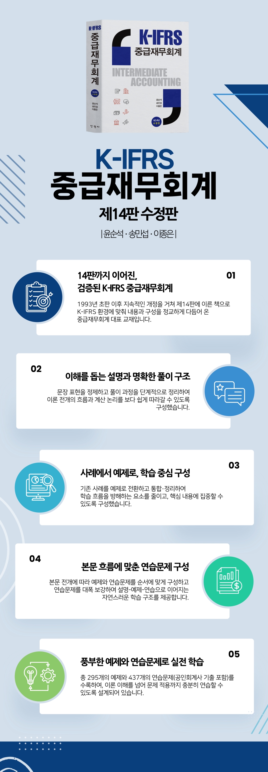 이번 〈K-IFRS 중급재무회계〉 ‘제14판 수정판’은 제14판의 기본 체계를 유지하면서, 문장과 설명, 예제 및 연습문제 구성을 점검·보완했다.