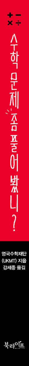 이 책을 풀어 본 사람들의 후기 책의 구성 및 문제 난이도 문제 선정 방식 및 해설 UKMT 수학대회 종류 책 한눈에 보기 [52주 완성 수학 문제 365+] Week 001~002 -Special Round 논리 문제① Week 003~004 -Special Round 숫자 퍼즐① Week 005~006 -Special Round 숫자 만들기 Week 007~008 -Special Round 숫자 퍼즐② Week 009~010 -Special Round 셔틀 문제① Week 011~012 -Special Round 숫자 퍼즐③ Week 013~014 -Special Round 논리 문제② Week 015~016 -Special Round 숫자 퍼즐④ Week 017~018 -Special Round 셔틀 문제② Week 019~020 -Special Round 숫자 퍼즐⑤ Week 021~022 -Special Round 논리 문제③ Week 023~024 -Special Round 숫자 퍼즐⑥ Week 025~026 -Special Round 셔틀 문제③ Week 027~028 -Special Round 숫자 퍼즐⑦ Week 029~030 -Special Round 논리 문제④ Week 031~032 -Special Round 숫자 퍼즐⑧ Week 033~034 -Special Round 셔틀 문제④ Week 035~036 -Special Round 숫자 퍼즐⑨ Week 037~038 -Special Round 논리 문제⑤ Week 039~040 -Special Round 숫자 퍼즐⑩ Week 041~042 -Special Round 논리 문제⑥ Week 043~044 -Special Round 숫자 퍼즐⑪ Week 045~046 -Special Round 숫자 퍼즐⑫ Week 047~048 -Special Round 준결승 문제 Week 049~050 -Special Round 숫자 퍼즐⑬ Week 051~052 -Special Round 결승 문제 Last Week [정답 및 해설] Week 001~052 -Special Round 용어집 주요 수열 30항 표 UKMT 출판물 감사의 글 |