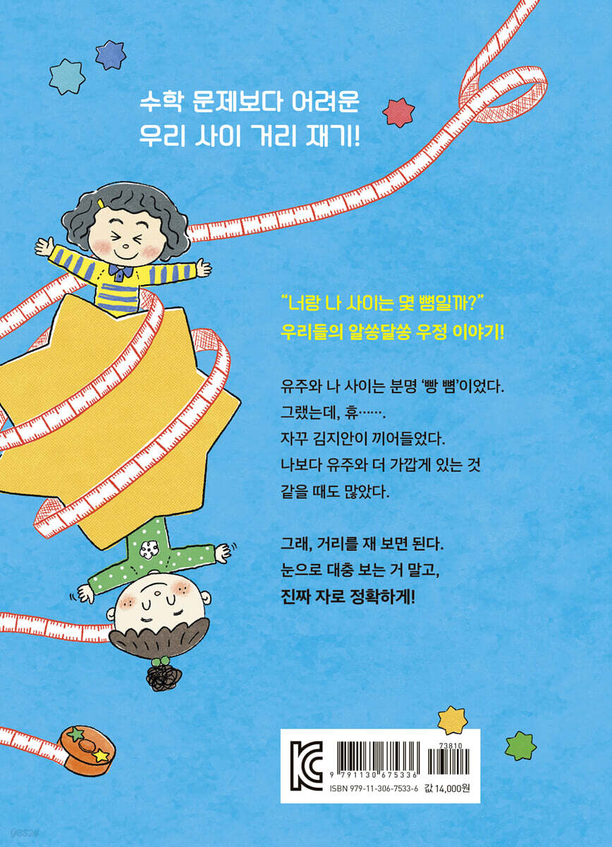 길이 재기 시간에 모둠끼리 찍은 사진을 보고 해라는 두 눈을 의심합니다. 찐친 유주가 자신보다 김지안과 가까이 붙어 마주 보고 웃는 모습을 발견한 것이죠. 자신과 유주 사이 거리는 두 뼘, 유주와 김지안 사이 거리는 한 뼘. 딱 한 뼘 차이였지만 해라는 속상하고 걱정부터 앞섭니다. ‘이제 유주가 김지안이랑 더 친해진 거 아닐까?’ 결국 해라는 수학 시간에 배운 길이 재기를 활용해 세 사람의 거리를 직접 재어 보기로 합니다. 하지만 자로 재듯 정확하고 쉽게 해결될 거란 예상과 달리 해라와 유주 사이는 점점 꼬여 갑니다. 빵 뼘처럼 가까운 사이에서 천 뼘만큼 멀어진 해라와 유주 사이, 두 사람은 과연 예전처럼 사이좋게 지낼 수 있을까요?