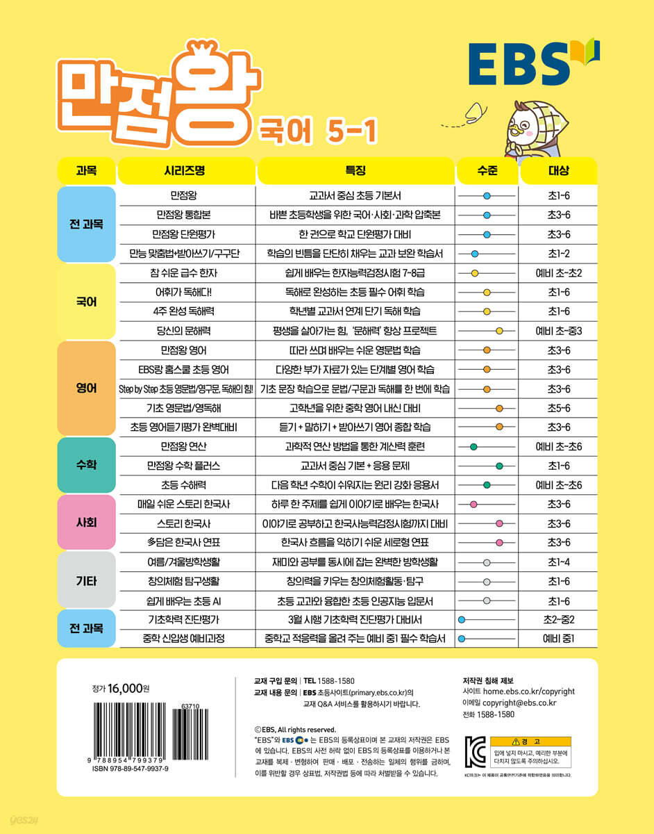 1 대화를 나누어요 2 체험한 일을 글로 써요 3 발표하고 질문해요 4 대상을 설명해요 5 의논하며 토의해요 6 작품을 즐겨요 BOOK 2 실전책 1 대화를 나누어요 2 체험한 일을 글로 써요 3 발표하고 질문해요 4 대상을 설명해요 5 의논하며 토의해요 6 작품을 즐겨요 BOOK 3 해설책 |