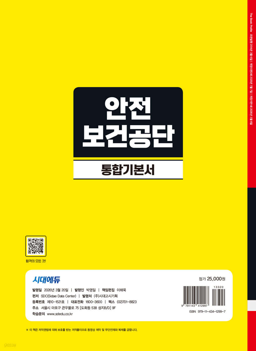 이에 시대에듀에서는 안전보건공단 판매량 1위의 경험을 토대로 『2026 최신판 시대에듀 안전보건공단 통합기본서』를 출간하였다. 『2026 최신판 시대에듀 안전보건공단 통합기본서』는 2026년 안전보건공단 채용 대비 기본서이다. 2025년 주요 공기업 NCS 기출복원문제를 수록하여 공기업 필기전형의 전반적인 유형과 경향을 파악할 수 있도록 하였으며, NCS 직업기초능력평가 영역별 대표기출유형, 기출응용문제를 수록하여 체계적으로 학습할 수 있도록 하였다. 또한 철저한 분석을 통해 구성한 최종점검 모의고사를 5회분 수록하여 자신의 실력을 점검 및 향상시킬 수 있도록 하였다. 이뿐만 아니라 인성검사 및 안전보건공단 채용 가이드와 최신 면접 기출질문을 수록하여 채용 전반에 대비하는 데 부족함이 없도록 하였다. |