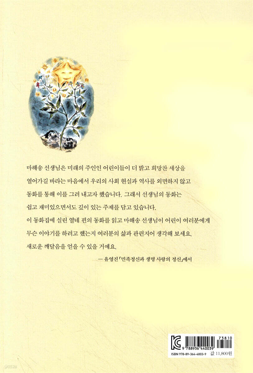 바위나리와 아기 별 어머님의 선물 박과 봉선화 꽃씨와 눈사람 점잖은 집안 길에 사는 아이 생각하는 아버지 할아버지 지게 떡배 단배 제2부 토끼와 원숭이 사슴과 사냥개 꼬부랑 새싹 꽃아! 내 춤을 새어머니 해설 자주와 독립의 정신을 심어 준 동화/이오덕 |