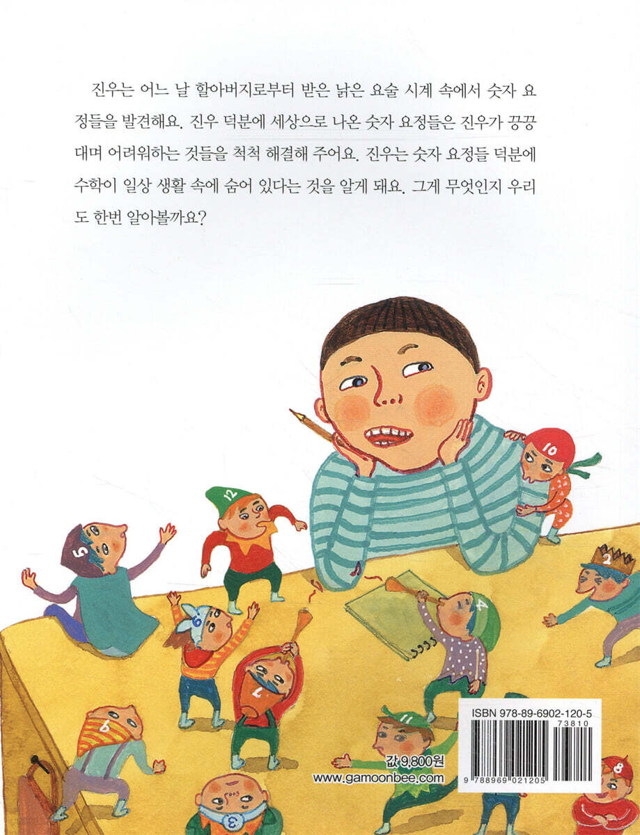 1화. 할아버지의 특별한 선물 2화. 숫자 요정들과의 만남 3화. 밤 12시 30분 00초. 과연 무슨 일이? 4화. 미션, 엄마의 심부름 5화. 시계 속에 숨어 있는 수학 6화. 달력 속에 숨어 있는 수학 7화. 촌수, 친척과 나와의 관계 8화. 오늘의 날씨는? 9화. 운동화가 작아졌어 10화. 음악은 수학을 타고 |