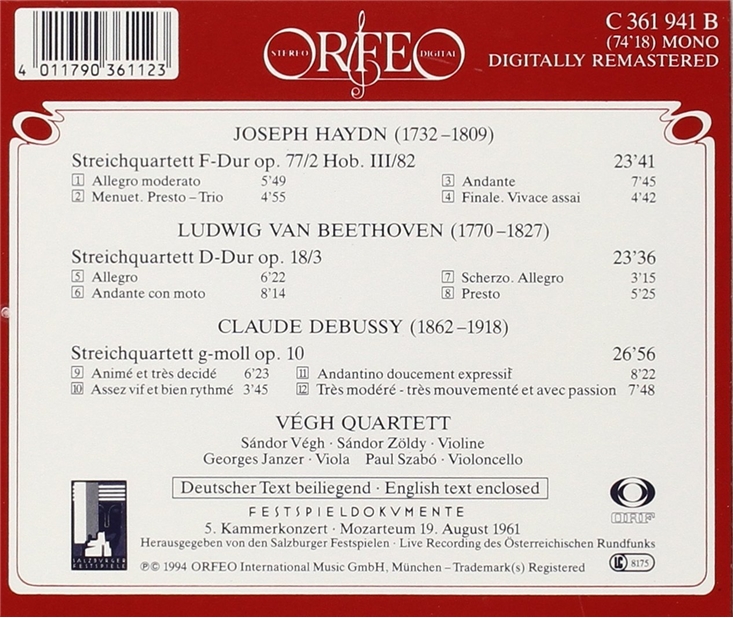 CD Vegh Quartet 하이든 / 베토벤 / 드뷔시: 현악 사중주 (Haydn / Beethoven / Debussy: String Quartets Op.77/2, Op.18/3)