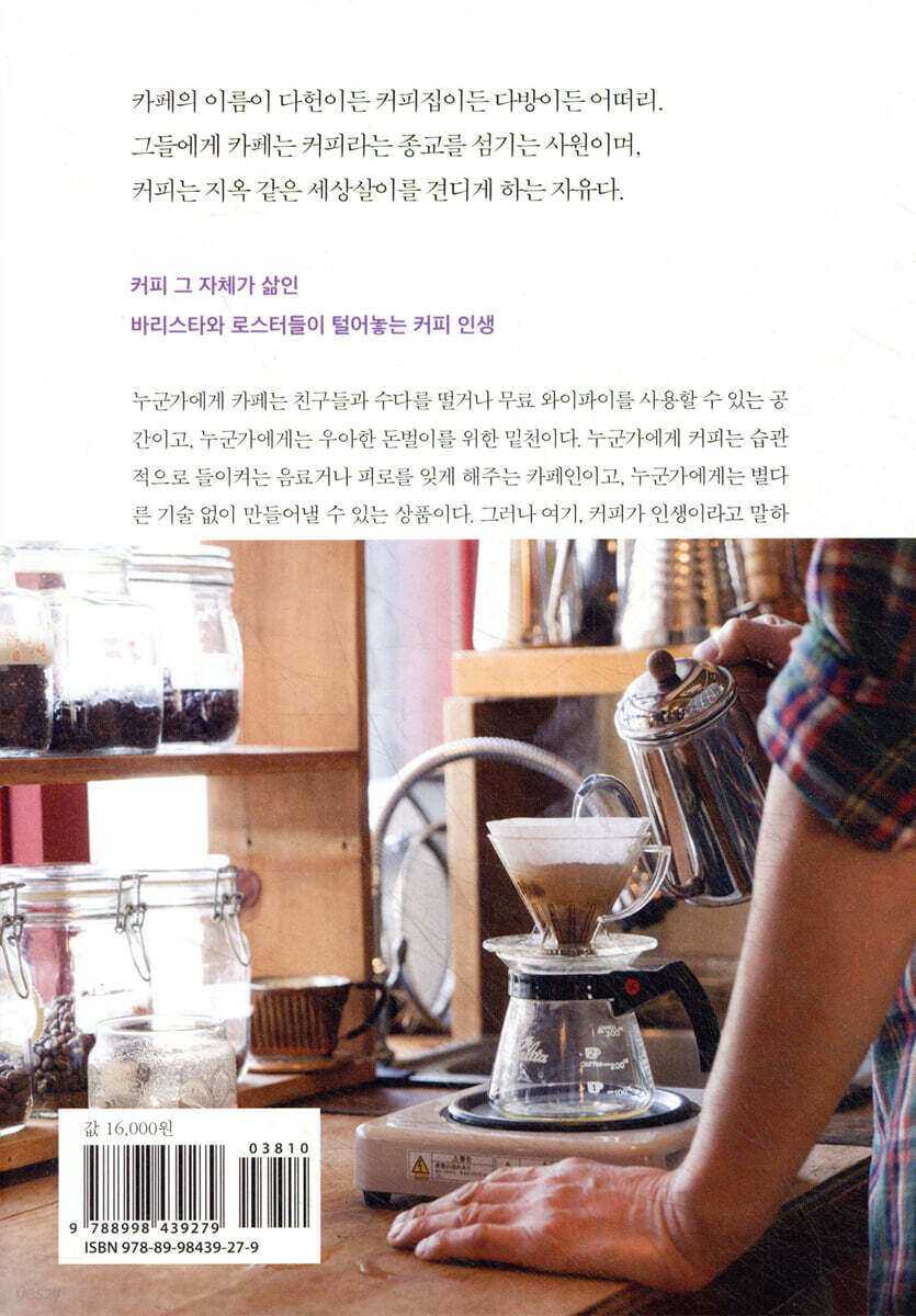 긴 여행의 시작은, 바리스타 서필훈의 역사에서 출발하는 우리나라의 커피 이야기다. 바에 들어가 일해본 적도, 그 어떤 자격증도 없는 나는 그 여행을 서술하는 작가다. 여행의 출발점인 안암동 카페 보헤미안에서부터 시작해 내가 커피를 마셔왔던 지난 12년의 순간들은, 우리나라 커피 역사에서 가장 많은 변화가 일어났던 시기다. 올드스쿨의 오랜 역사를 넘어 스페셜티 커피의 시대를 마주하기까지, 앞으로 시작될 23명 커피인들의 인생 이야기는 바로 이 10여 년간의 역사를 고스란히 전해줄 것이다. --- p.14