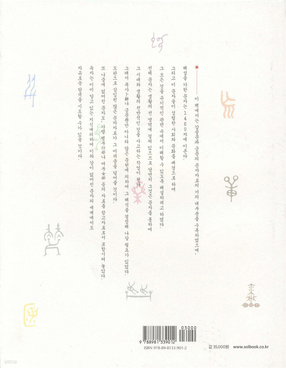 출간의의 및 개요 이 책은 종교성과 주술성을 키워드로 삼아 한자의 원류로 거슬러 오른다. 전통적인 한자의 연구체계에 고고학적, 민속학적인 최신 성과를 반영하며 한자학과 고고학을 넘나든다. 문자의 발명으로 인류는 원시사회로부터 문명사회로 발전할 수 있었다. 그러나 문명을 열어준 문자는 그 배후에 오랜 원시의 세계를 담고 있다. 상형문자인 한자는 소위 문명 이전의 오랜 역사적 토대 위에 성립한 문자이다. 구전상으로나 기록상으로 지금은 사라져버린 먼 과거의 세계가 한자에 깊은 잔영을 드리우고 있다. 그것은 화석처럼 스스로 말을 하지는 않지만, 우리는 고대문자의 배후에 자리잡은 고대를 발굴할 수 있다. 나아가 고대문자 성립의 기반이 되는 그 사회의 실태를 확인할 수도 있다. 시라카와 시즈카(1910-2006)는 일본의 세계적인 한문학자, 한자학자였다. 리쓰메이칸(立命館) 대학 교수로 재직했으며 정년퇴직한 후에도 왕성한 학문활동을 하다가 2006년에 타계했다. 한자학 3부작 『字統』, 『字訓』, 『字通』이 일생을 바친 대표작이다. 갑골문자나 금문 같은 초창기 한자의 성립 배경에 종교적이고 주술적인 요소가 작용했다고 보는 그의 학설은 ‘시라카와 문자학’이라고 일컬어지며 국제적으로도 높은 평가를 얻었다. 수만 쪽의 갑골 자료를 모두 도면화하는 기초작업을 통해 한자의 원의를 자형적으로 체계화했고, 나아가 그 종교적, 주술적 배경을 자형분석을 통해 규명했다. 시라카와는 특히 『시경』 등의 고대문헌을 당시의 사회로 되돌아가서 읽기 위하여, 또 당시의 사회에서 사용된 언어를 복원하기 위하여 갑골문과 금문 연구에 몰두했다. 그는 특히 어휘의 용례를 철저히 조사하고 분석하는 실증적 과정을 중시하며 그것을 몸소 실행했다. 그렇게 함으로써 후한의 허신(許愼)이 지은 『설문해자』의 오류를 밝혀내었다. 시라카와는 갑골문과 금문이라는 한자 성립 초기의 문자를 자료로 삼아, 한자 성립시대의 관념으로써 문자를 해석하되 한자를 그 자형에 의거하여 계통적이고 체계적으로 해석하고자 하는 태도와 방법론을 견지했던 것이다. 시라카와의 이런 학문적 태도와 방법론이 뚜렷이 드러난 것이 바로 이 책 『한자의 세계- 중국문화의 원점』이다. 이것은 갑골문과 금문에 나타나는 한자 1,460자를 문제사적으로 분류하여 그 계열을 따라 총론적으로 해설한 것이다. 그리고 한자 성립시대의 생활상에 따라 전체를 12개 장으로 나누어 관련 문자를 해석하고 있는데, 그 전체를 관통하고 있는 것은 무엇보다도 종교성과 주술성이라는 데 특징이 있다. 문자를 먼 과거에는 文이라고 했다. 문자라는 말은 사마천이 지은 『사기』 「시황본기」에 처음으로 등장한다. 춘추시대의 일을 기록한 『춘추좌씨전』에는 태어난 아이의 이름을 지을 때 손바닥의 무늬를 보고 지은 몇몇 사례가 기록되어 있다. 文은 『설문해자』에서 “교차된 획이다. 교차된 무늬를 본떴다”고 하며, 선이 교차하여 무늬를 이룬 문자로 풀이한다. X형은 무늬의 기본형식으로 생각되었으며, 교차된 무늬란 文의 아랫부분에 있는 X형을 가리키는 말이다. 그러나 그것의 윗부분이 무엇을 본뜬 모양인지에 대하여 『설문해자』는 말하고 있지 않다. 복문이나 금문에는 文의 자형이 매우 많다. 文의 기본형은 大와 비교되어 알려진 것처럼 사람이 서 있는 정면의 모양이다. 다만 가슴 부분이 특별히 크게 표시되어 있고, 거기에 V형, X형, 心형 등과 함께 이들의 변화형이 더해져 있다. 이것은 명백하게 가슴에 더해진 무늬이자 문신이다. 즉 文의 자형은 가슴에 새겨진 문신을 나타내며, 이 문자의 본뜻도 문신을 뜻한다. 일찍이 문신의 풍속이 자취를 감춘 중국은 주변 민족들에 남아 있는 문신을 미개한 야만족의 풍속으로 여겼다. 실례로 『좌전』, 『춘추곡량전』, 『장자』 「소요유」, 『묵자』 「공맹」 등에는 吳나 越 등의 해안지방에 머리카락을 자르고 문신을 하는 풍속이 있었다는 기록이 보인다. 문신의 풍속 없이 문신을 나타내는 文의 자형이 생겨나지는 않았을 것이며, 또 文을 자형의 구성요소로 삼고 있는 ?, 産, 彦, 顔 등의 문자와, 가슴의 문신을 나타내는 凶, 匈, 胸, 爽, 奭, 爾 등의 문자가 만들어졌을 리 없다. 게다가 文은 문신이나 문자 일반을 의미할 뿐 아니라, 나중에는 중국문화의 이념을 나타내고 그 전통을 의미하는 문자가 되었다. 공자가 “문왕께서 이미 돌아가셨지만 그 문화(文)는 여기에 있지 아니한가!”(『논어』 「자퇇」)라고 말한 것은 그 전통의 자각을 뜻한다. 文에 이와 같이 높은 이념적 의미가 부여된 것은 文이 원래 고대의 神聖 관념에서 비롯된 것이기 때문이다. 이런 식으로 시라카와는 한자의 기원을 추적한다. 갑골문과 금문은 문자의 자료로서도 가장 오랜 것이며, 그런 만큼 갑골문과 금문을 잘 이해하기 위해서는 고대문자에 대한 지식이 필요하다. 고대문자를 연구하기 위해서는 갑골문과 금문 자료에 대한 지식이 필요하다. 그런 면에서 『한자의 세계』는 시라카와의 기존 저작인 『금문의 세계』, 『갑골문의 세계』의 연장선상에 있다. 시라카와는 일본의 경