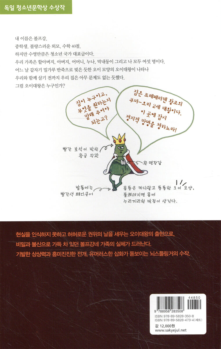 1972년 독일에서 출간되어 1997년 우리나라에 처음 소개된 『오이대왕』은 국내 청소년문학 외서 시장에서 독보적인 자리를 차지하고 있는 책이다. 이미 세계적인 작가로 입지를 굳힌 크리스티네 뇌스틀링거를 국내에 거의 처음 소개하는 역할을 한 이 작품은 전형적인 동화의 제목과 삽화 이면에 현대 사회에 대한 날카로운 진단을 담고 있어 청소년뿐만 아니라 ‘사계절1318문고’를 사랑하는 많은 성인들의 입에도 꾸준히 오르내려 왔던 작품이다. 사계절출판사는 청소년문학 필독 도서목록에 반드시 올라가곤 하는 이 책을 번역을 꼼꼼히 재검토하고 변화한 청소년문학 감각에 맞도록 표지를 재구성하여 2009년 개정판을 출간했다.