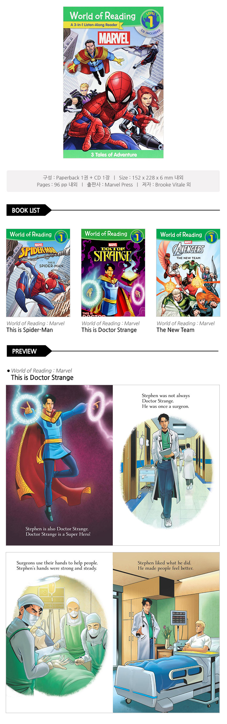 외서 World of Reading: Marvel 3-In-1 Listen-Along Reader-World of Reading Level 1: 3 Tales of Adventure with CD! [With Audio CD]