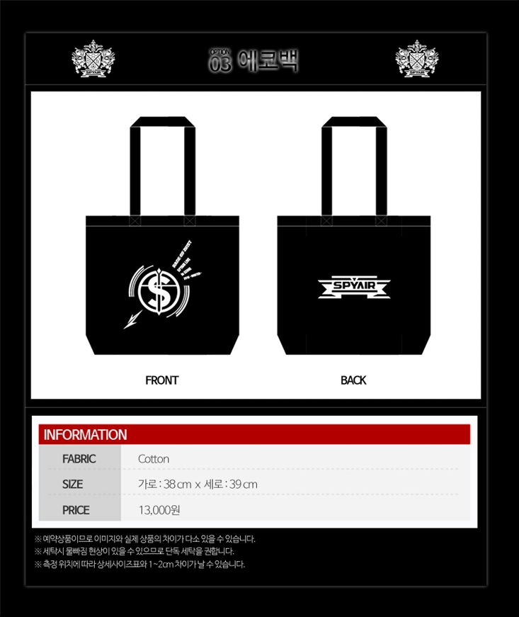 음악관련 Spyair (스파이에어) 2016년 서울 라이브 공식 굿즈: 에코백 (Live in Seoul 2016 [Winter])