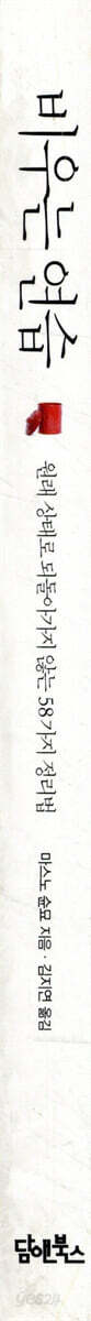 · 이번 책의 주제인 ‘줄이는’ 삶의 태도를 익혀야 합니다. 이것은 단순히 정리 정돈에 대한 이야기가 아닙니다. 정보, 쇼핑, 인간관계, 이 모든 것이 과잉되기 쉬운 현대 사회에서 주위에 휩쓸리지 않고 ‘지금 나에게 가장 중요한 것은 무엇일까’를 확인하며 사는 것은 인생을 풍요롭게 만드는 첫걸음이 될 것입니다.