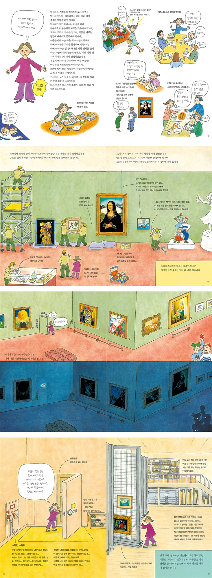 하나의 그림이 전시되는 과정과 미술관에서 일하는 사람들의 모습을 담은 지식 그림책