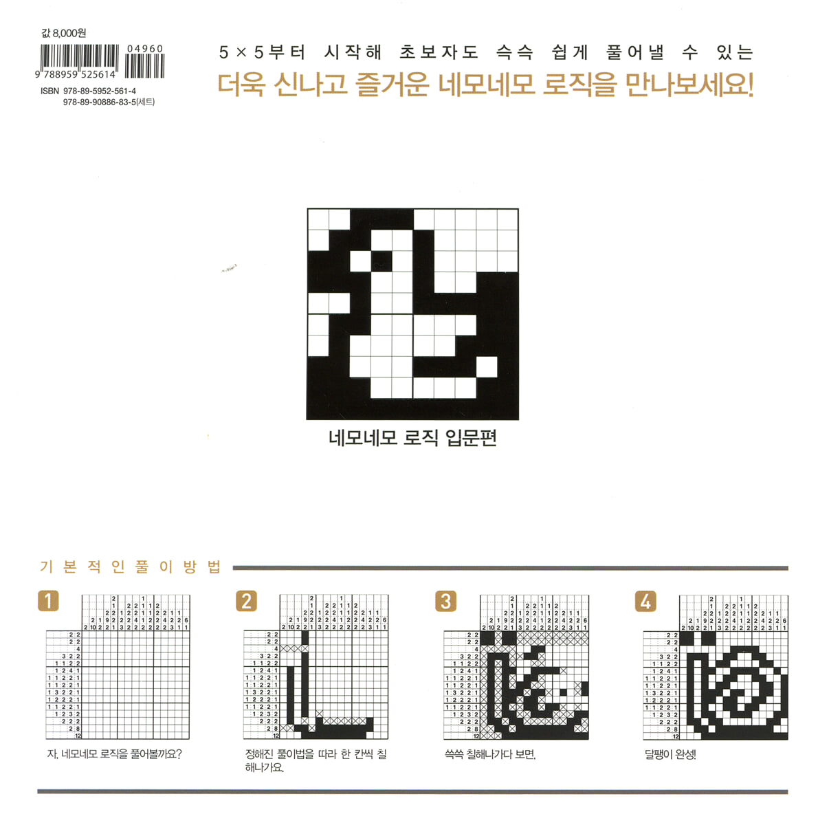 2. 문제의 위와 왼쪽의 숫자가 만나는 부분을 찾아 칠하면 된다. 3. 2개 이상의 수가 있을 경우에는 숫자의 순서대로 한 칸 이상을 비워두고 칠하면 된다. (한 칸이든 두 칸이든 그 이상이든, 위와 왼쪽의 숫자에 따라 띄는 칸 수는 달라진다.) |