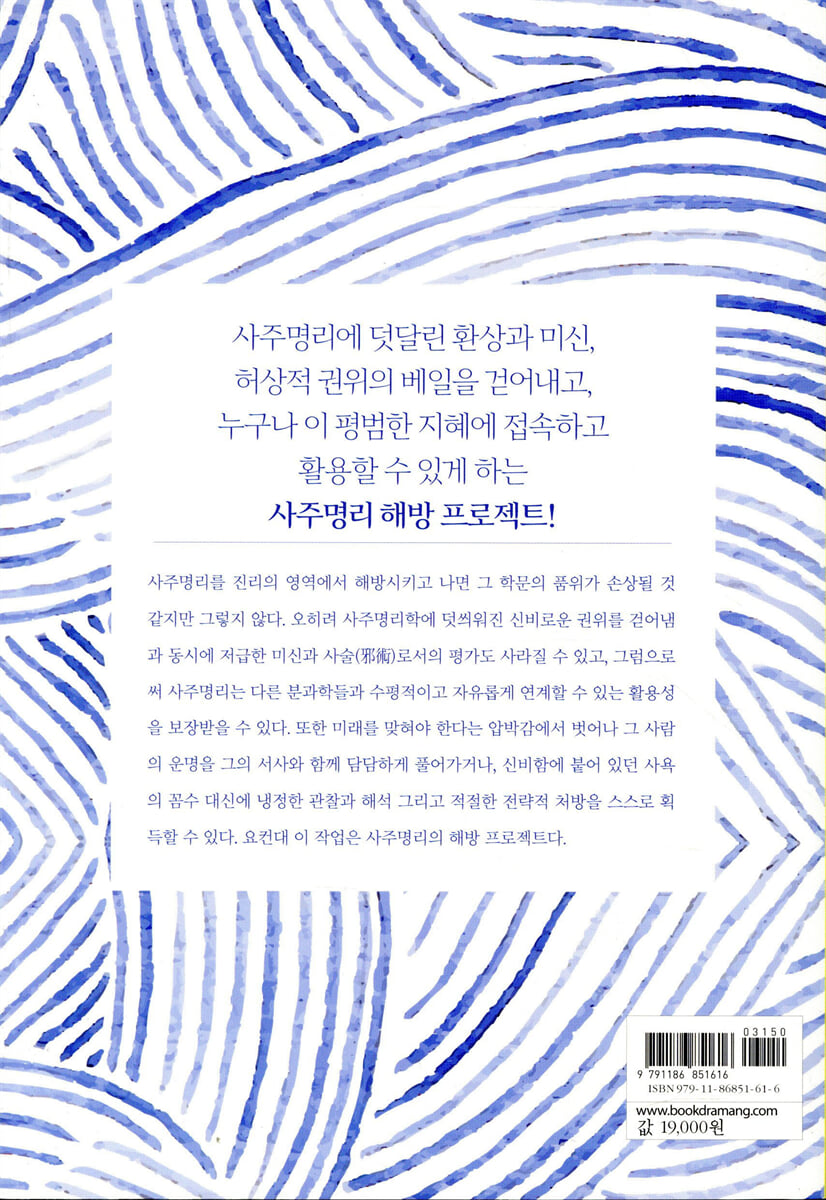 사주명리를 진리의 영역에서 해방시키고 나면 그 학문의 품위가 손상될 것 같지만 그렇지 않다. 오히려 사주명리학에 덧씌워진 신비로운 권위를 걷어 냄과 동시에 저급한 미신과 사술(邪術)로서의 평가도 사라질 수 있고, 그럼으로써 사주명리는 다른 분과학들과 수평적이고 자유롭게 연계할 수 있는 활용성을 보장받을 수 있다. 또한 미래를 맞혀야 한다는 압박감에서 벗어나 그 사람의 운명을 그의 서사와 함께 담담하게 풀어가거나, 신비함에 붙어 있던 사욕의 꼼수 대신에 냉정한 관찰과 해석 그리고 적절한 전략적 처방을 스스로 획득할 수 있다. 요컨대 이 작업은 사주명리의 해방 프로젝트다. 즉, 사주명리에 덧달린 환상과 미신 그리고 허상적 권위의 베일을 걷어 내고, 풀의 실체적 모습을 회복하는 일이다. 그럼으로써 사람들로 하여금 사주명리에 보편적이고 비권위적으로 접근할 수 있게 하여, 이 평범한 지혜를 누구나 쉽게 쓸 수 있게 하는 데 목적이 있다