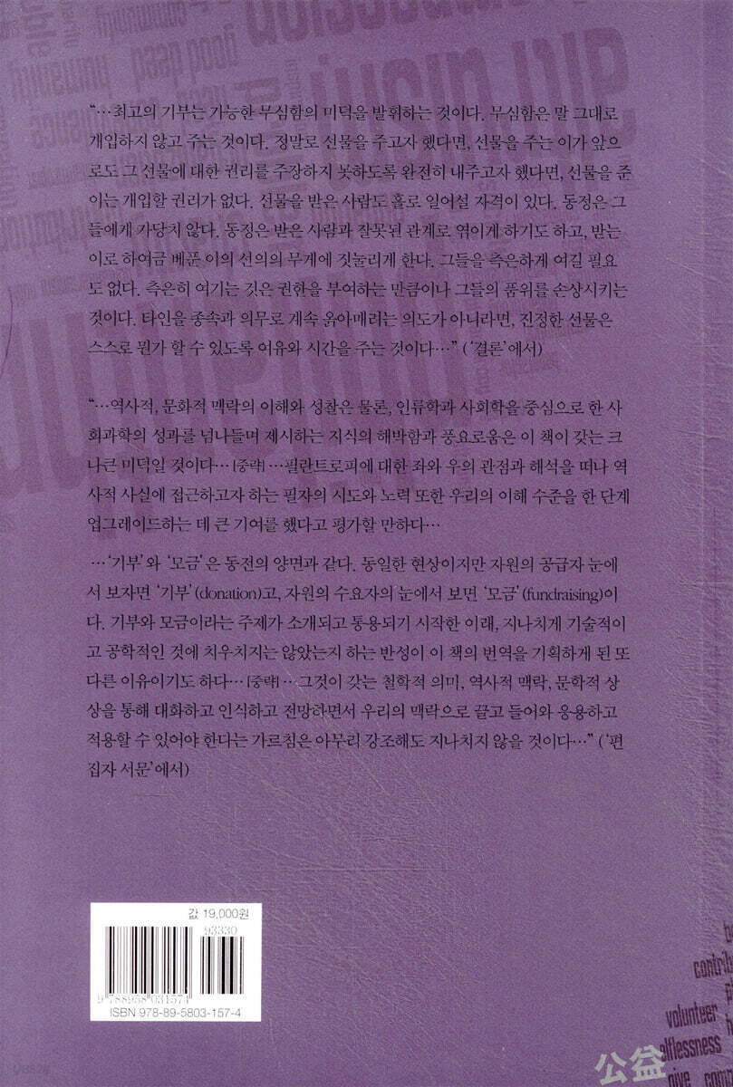 편집자 서문 서문: 부자가 천국에 가는 방법 1 빅맨 빠져나올 수 없는 ‘쿨라’의 덫 조직화된 자선의 등장과 카네기 록펠러와 포드, 그리고 정치권력을 둘러싼 논쟁 2 테드헤드 사회적기업과 사회적기업가정신 사회적 자본 은행 사회적기업과 사회적 가치 정부·재단 지원과 사회적기업 3 맨더빌의 사생아들 공유가치 창출 선택과 집중 지식 헤지 개입과 이해관계의 충돌 세금 대 자선 4 사소한 이익에 목매는 사람들: 교육정책 ‘빌&멜린다게이츠재단’의 시작 ‘아동낙오방지법’과 성취도 평가 교육계의 숨은 실세들 차터스쿨에 대한 믿음 가난한 아이들이 돈벌이의 기회? 빌 게이츠 자신은 어떤 책임을 지는가? 5 신이 부여한 사명: 게이츠재단과 세계보건의료정책 게이츠재단의 국제적 영향력 자궁경부암 백신과 임상시험 개도국의 공공보건의료제도 게이츠재단의 기금 투자 정책과 지원 이슈 6 바스티아, 저들을 용서하길: 특허권 분쟁 남아프리카를 제소하다 특허 분쟁 해외 원조의 브랜드 이미지 7 언제나 코카콜라 세계곡물시장과 몬산토, 골드만삭스 그리고 게이츠재단 코카콜라와 게이츠재단 기부자 다스리기 결론: 이기적인 선물 감사의 말 미주 찾아보기 |