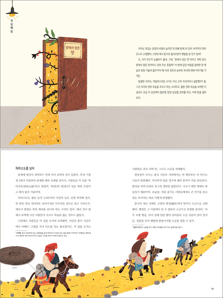 그 속에 담긴 가치와 의미를 읽어요! 오늘날, 과학 기술이 생활에 큰 영향을 미치고 있습니다. 아무리 과학 기술의 시대라고 해도 여전히 인문학이 중요합니다. 세상을 바라보는 넓은 시각은 바로 인문학적 소양에서 비롯되기 때문입니다. 짓다 시리즈는 인간의 삶과 떼려야 뗄 수 없는 의식주(衣食住)에 주목하며, 사회적·문화적·역사적 가치와 연결시켜 다각도에서 깊이 있게 살펴보았습니다. 시리즈의 두 번째 책은 ‘맛’을 주제로 하고 있습니다. 우리가 살아가려면 먹거리가 반드시 필요합니다. 음식을 먹어야 에너지를 내서 활동할 수 있기 때문입니다. 그것은 먼 옛날이나 오늘날이나 달라지지 않았습니다. 사람들은 먹거리를 안정적으로 얻기 위해 노력했습니다. 그렇게 최초의 농부가 탄생했지요. 땅에서 먹거리를 구하는 방법을 발견하는 것으로 끝이 아니었습니다. 힘들게 얻은 먹거리를 보관할 방법 또한 고민해야 했지요. 시간이 흐르며 먹거리는 사회적 위치나 부를 과시하기 위한 수단으로 변해 갔습니다. 과학 기술의 발달은 식문화에 획기적인 변화를 가져오기도 했지요. 『이런저런 맛』은 먹거리에 얽힌 인류의 역사를 보여 줍니다. 다양한 시대와 다양한 장소에서 먹거리가 어떻게 사회에 녹아들었는지, 사람들이 맛을 즐기기 위해 어떠한 노력을 했는지를 알아보세요. 중요한 역사적 사건을 자연스레 익히며 세상을 보는 새로운 시각을 기를 수 있을 것입니다. 맛있는 공장의 비밀을 찾아라, 재미있는 이야기로 배워요! 인문학적 지식을 단순히 전달하면 너무 어렵게 느껴질 수 있습니다. 『이런저런 맛』은 어린이 독자의 눈높이에 맞추어 이야기를 들려줍니다. 전 세계 누구에게 사랑받는 ‘맛있는 공장’을 둘러볼 기회가 왔습니다. 특별한 맛을 내는 비밀은 과연 무엇일까요? 맛있는 공장의 비밀을 찾는 동안, 어린이 독자들은 식문화가 어떠한 방식으로 변화했으며, 우리의 삶에 어떤 영향을 미쳤는지 살펴볼 수 있습니다. 지식이 단편적으로 기억되는 것이 아니라 상상력과 사고력을 바탕으로 풍성하게 쌓이지요. 사회의 이슈를 들여다보며 생각을 새롭게 지어요! 각 장의 끝에는 주제와 관련된 생각해 볼 거리를 제시했습니다. GMO 식품의 안전성 문제, 다국적 식탁과 환경 문제, 식량 불평등과 기아 문제, 합성 첨가물 논란 등 여러 가지 사회 이슈를 폭넓게 다루었습니다. 본문에서 배경 지식을 쌓고 이슈에 관한 자신만의 생각을 정리하며 사고가 확장될 것입니다. 어린이 독자들이 올바른 생각과 판단을 하려면 정확한 정보가 필요합니다. 서울대학교 사범대학 부설 여자중학교에서 역사를 가르치며 다수의 책을 써낸 김태훈 선생님의 꼼꼼한 감수를 받아 확실한 지식을 담아내고자 노력했습니다. |